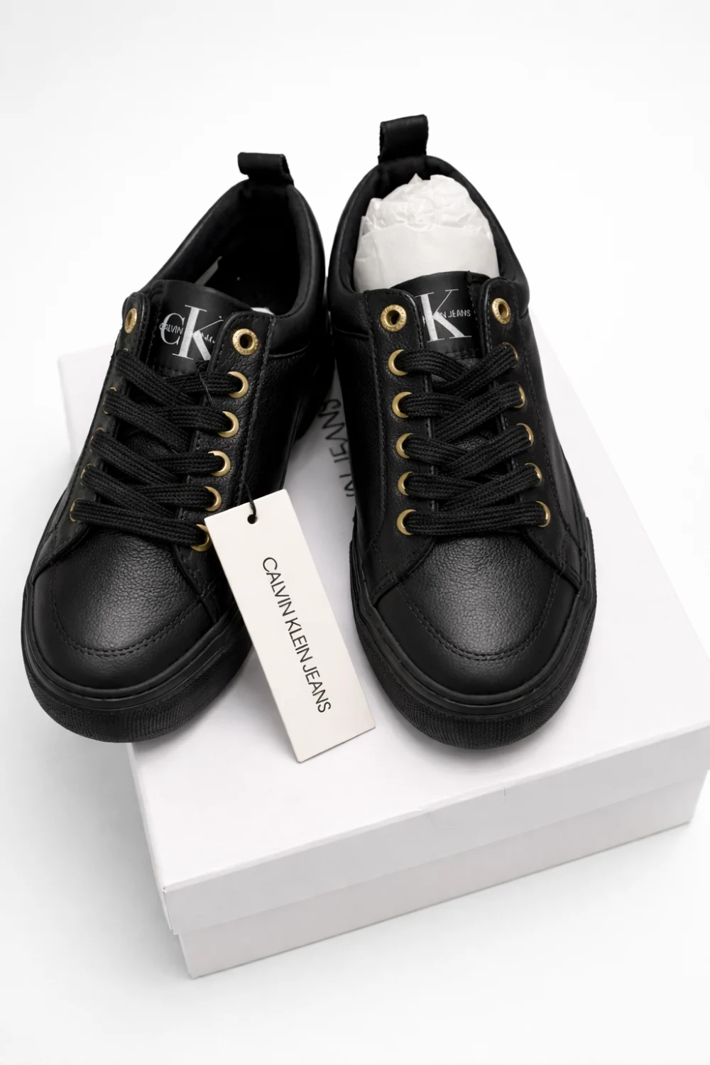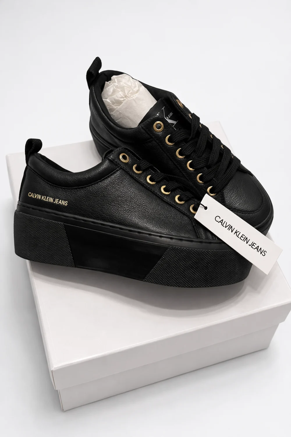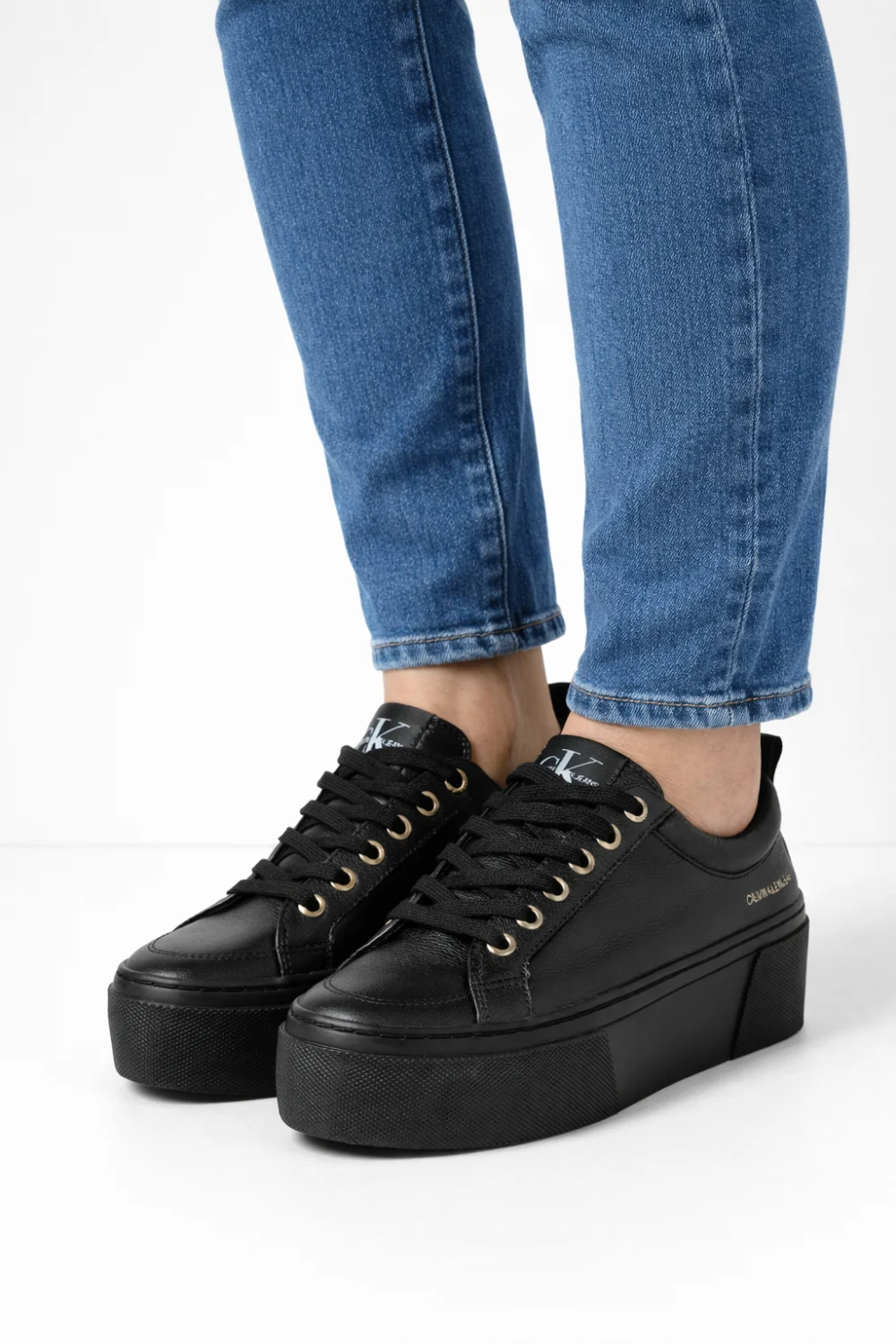 Stílus és kényelem egy cipőben. Ez a fekete, magas talpú Calvin Klein Jeans sportcipő valódi bőrből készült, így tartós viseletet és prémium megjelenést biztosít a mindennapokra. Modern kialakítása könnyen kombinálható sportos és casual outfitekkel is.