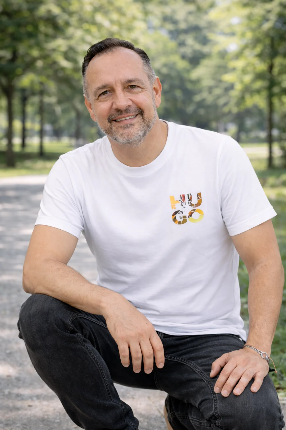 Hugo Boss fehér póló színes mintával