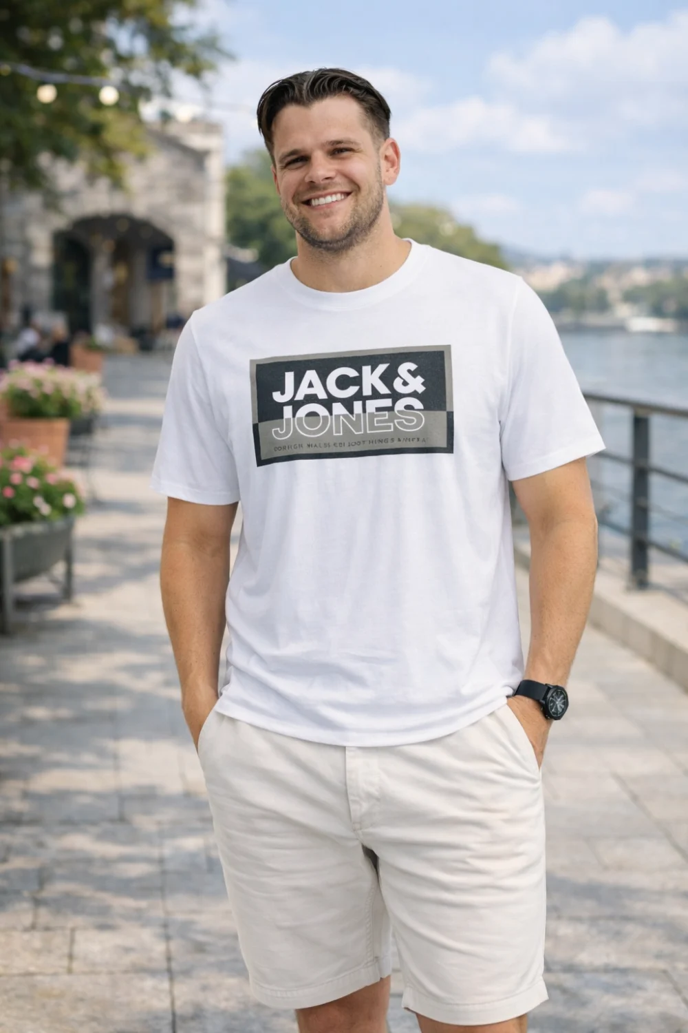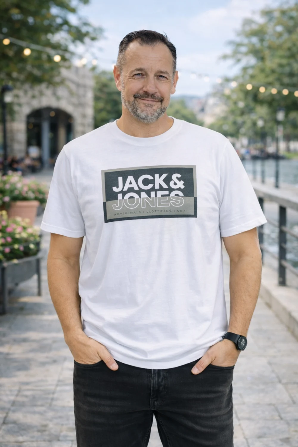 Jack & Jones fehér póló, mellkason mintával – lezser fazon