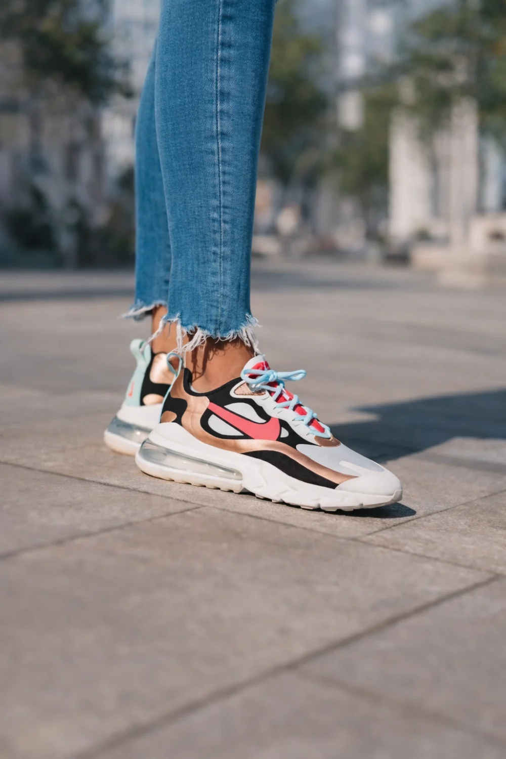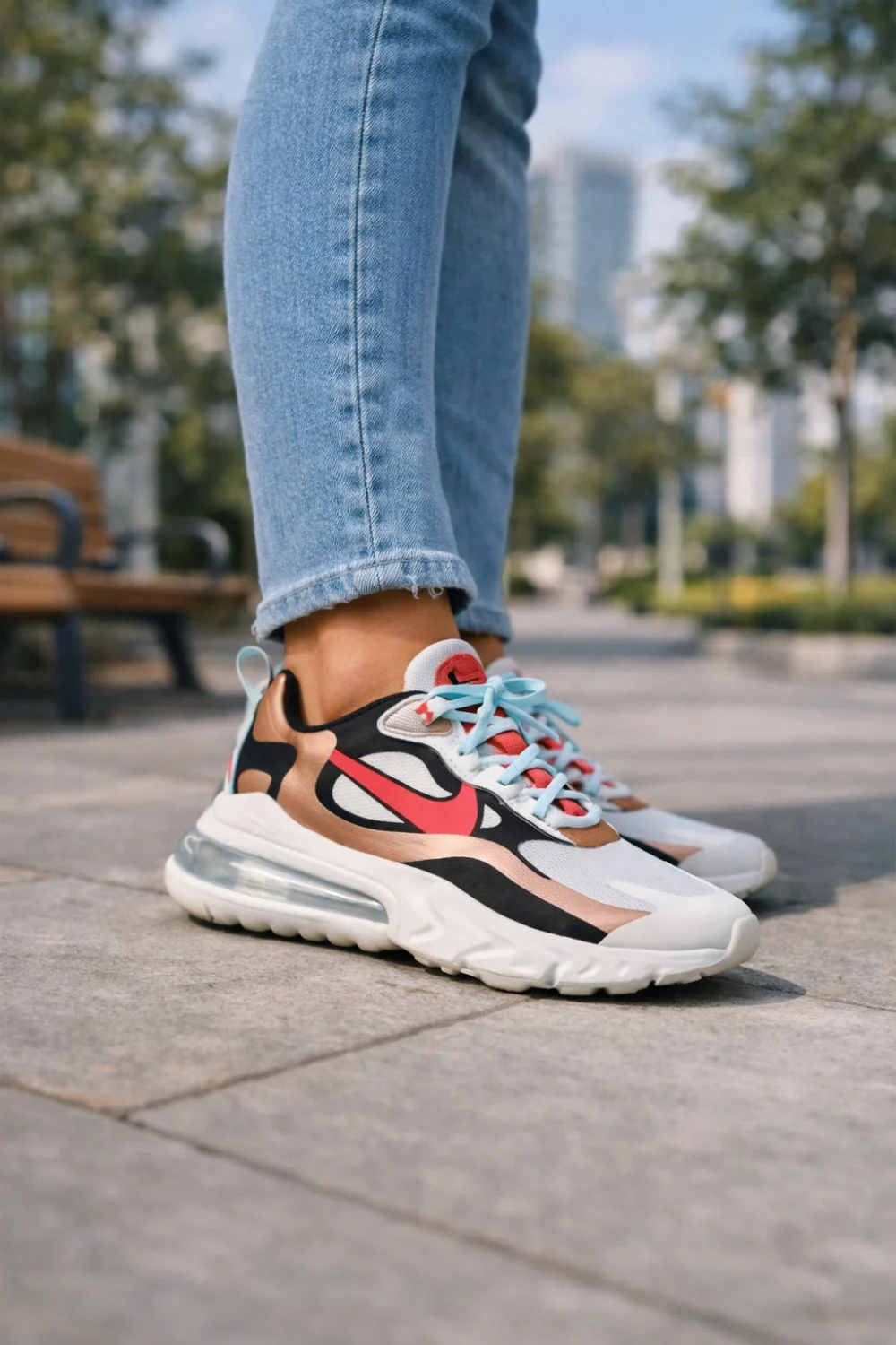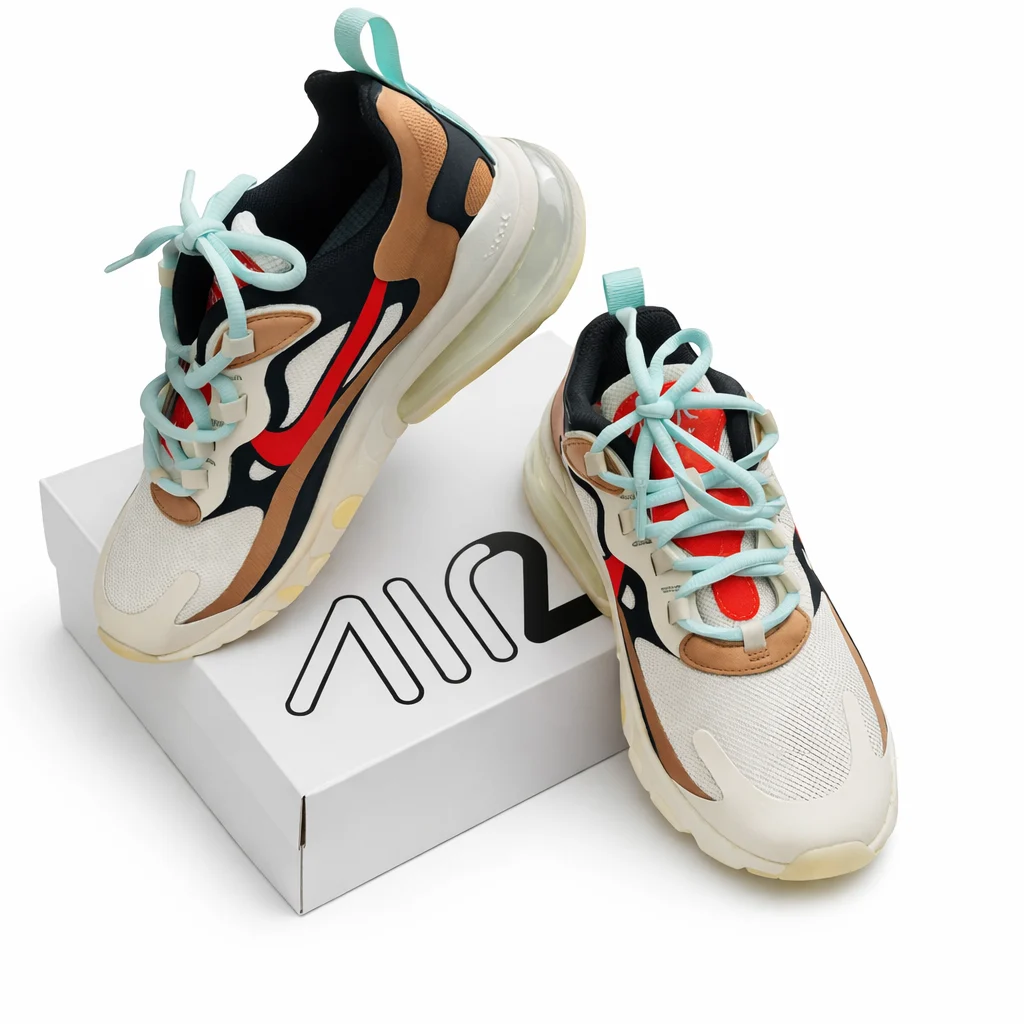 Stílusos és kényelmes Nike Air Max React női sportcipő modern, sportos kialakítással. A könnyű React habszivacs talp kiváló párnázást és energia-visszaadást biztosít, így ideális választás mindennapi viselethez vagy aktív napokra.