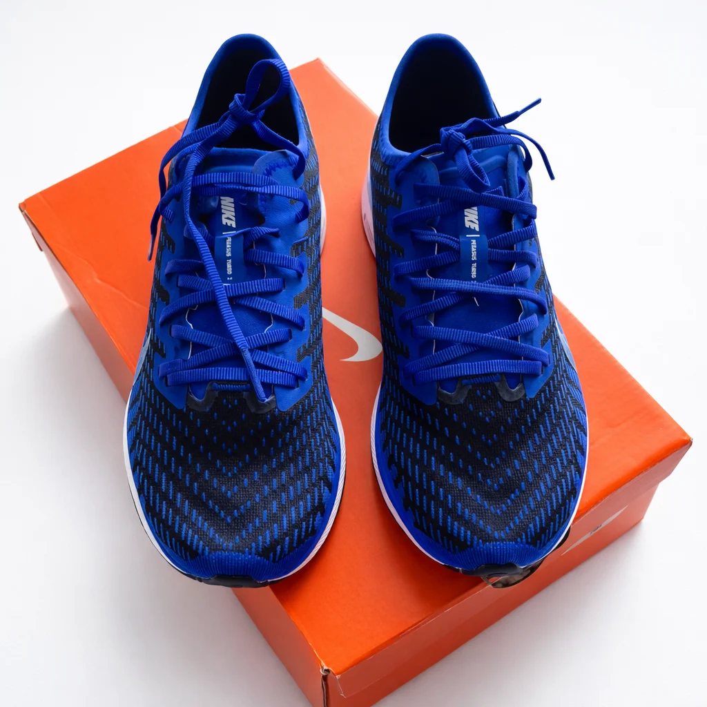 Sportos és modern Nike Zoom Pegasus Turbo 2 sportcipő királykék színben. Könnyű, légáteresztő felsőrésze és rugalmas talpa kiváló párnázást biztosít, így ideális választás futáshoz vagy mindennapi viselethez. Dinamikus kialakítása kényelmet és stílusos megjelenést nyújt.