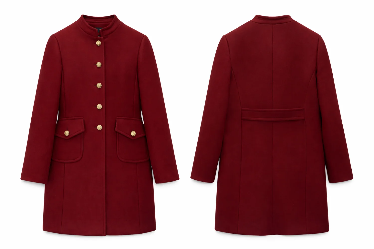 Zara bordó elegáns szövetkabát – 75% gyapjú, arany díszgombokkal