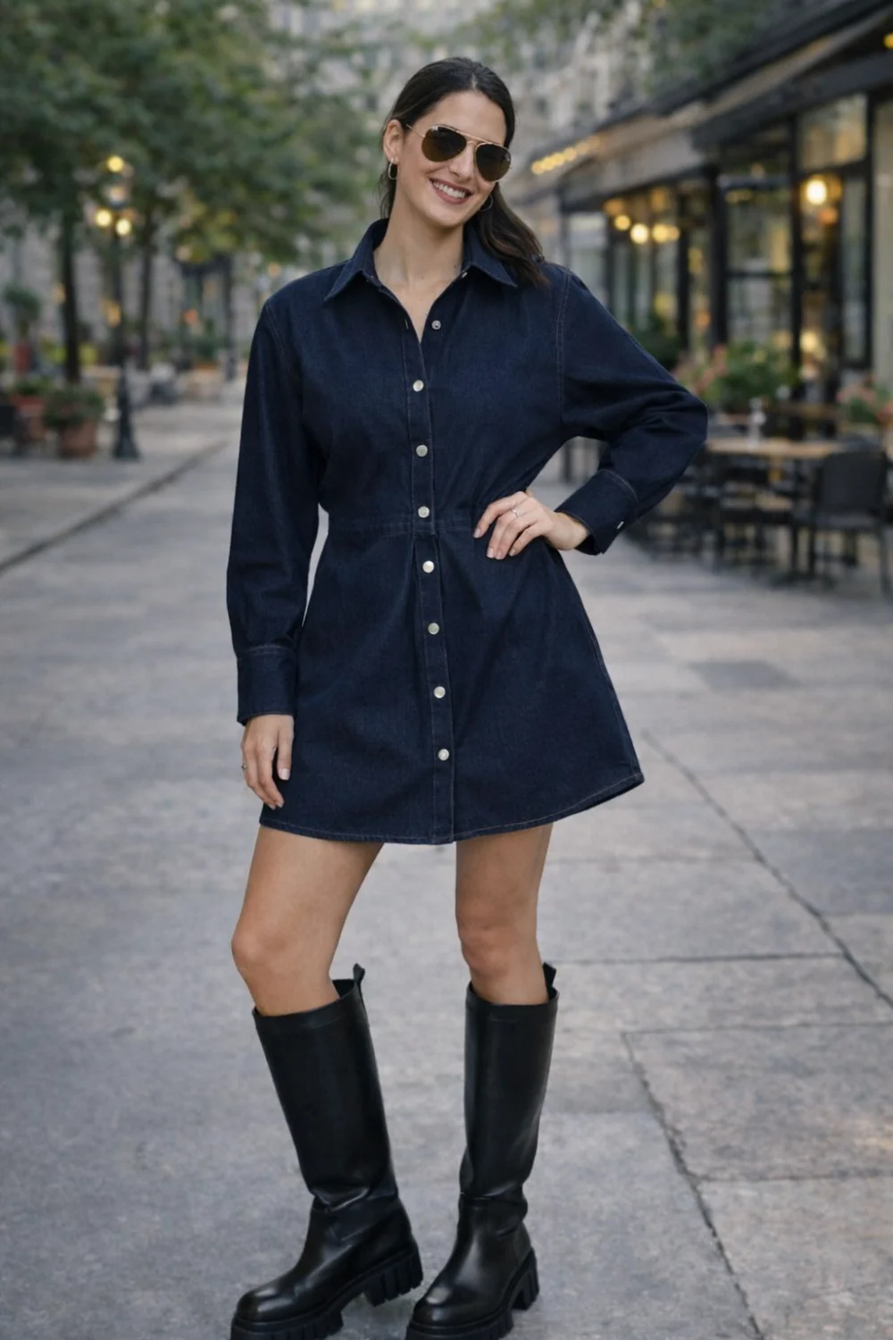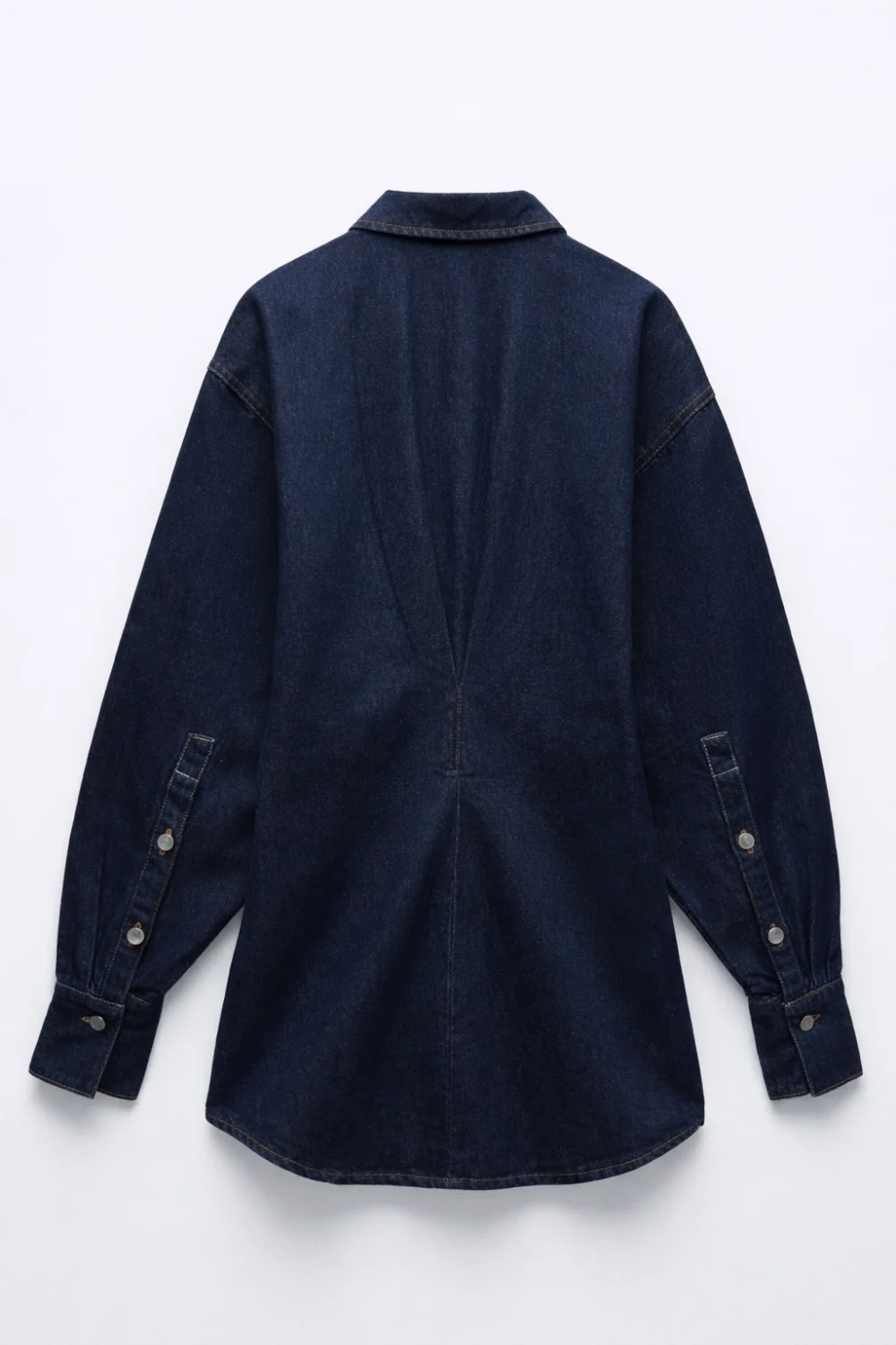 Ez a Zara szűkített fazonú farmerruha nőies és trendi választás a hétköznapokra. Alakot követő szabása szépen kiemeli a sziluettet, miközben kényelmes viseletet biztosít.