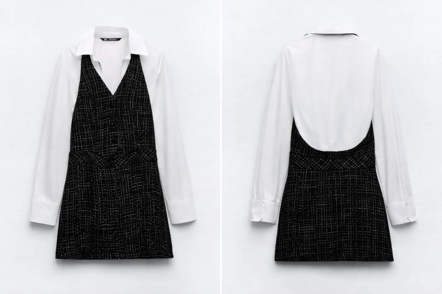 Stílusos és különleges darab, amely elegáns megjelenést biztosít. Ez a Zara fehér texturált rövid ruha a hozzá tartozó fehér inggel együtt modern, réteges hatást kelt.