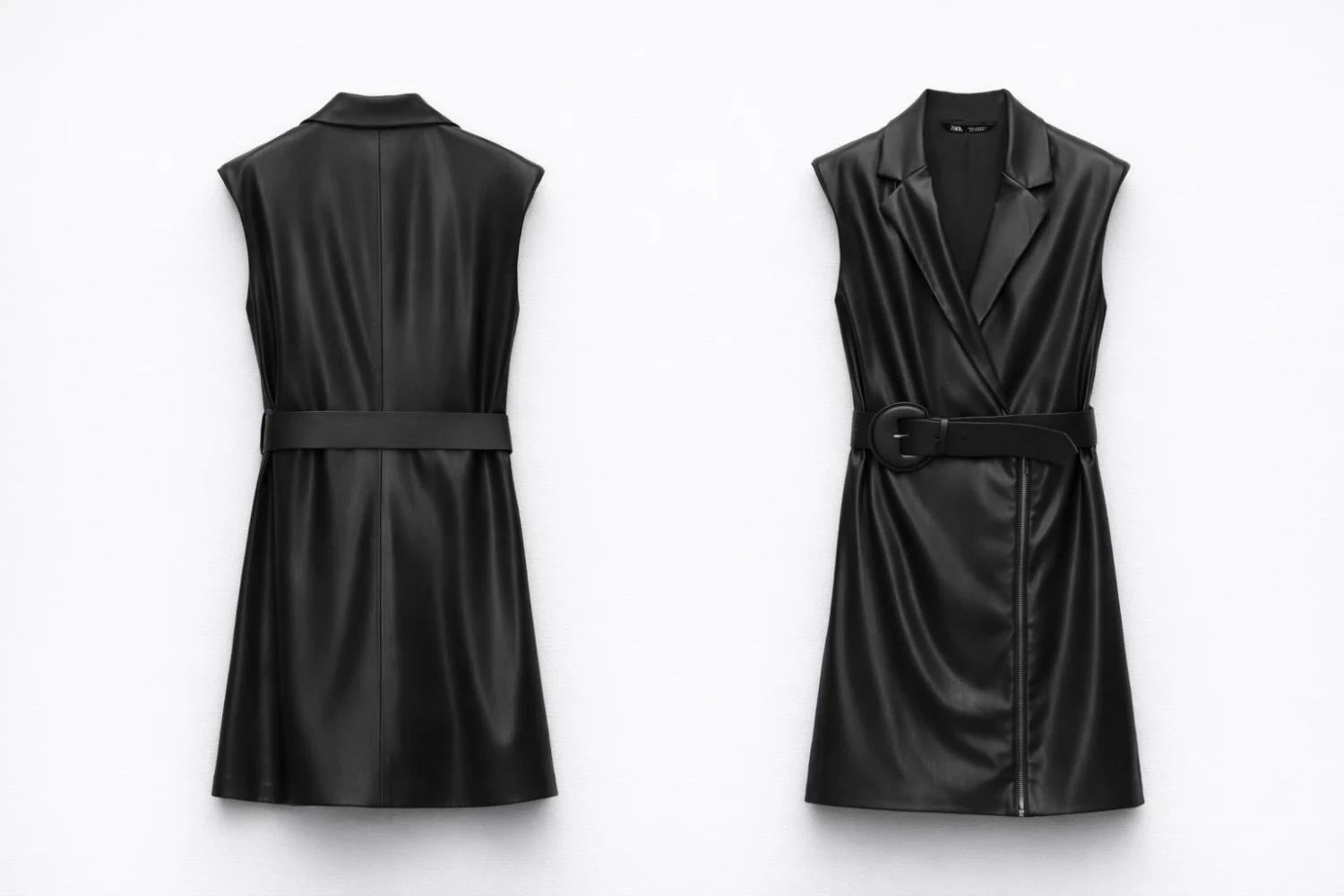 Karakteres és nőies darab a stílusos megjelenéshez. A műbőr anyag modern, vagány hatást ad, az ujjatlan fazon pedig letisztult sziluettet biztosít.