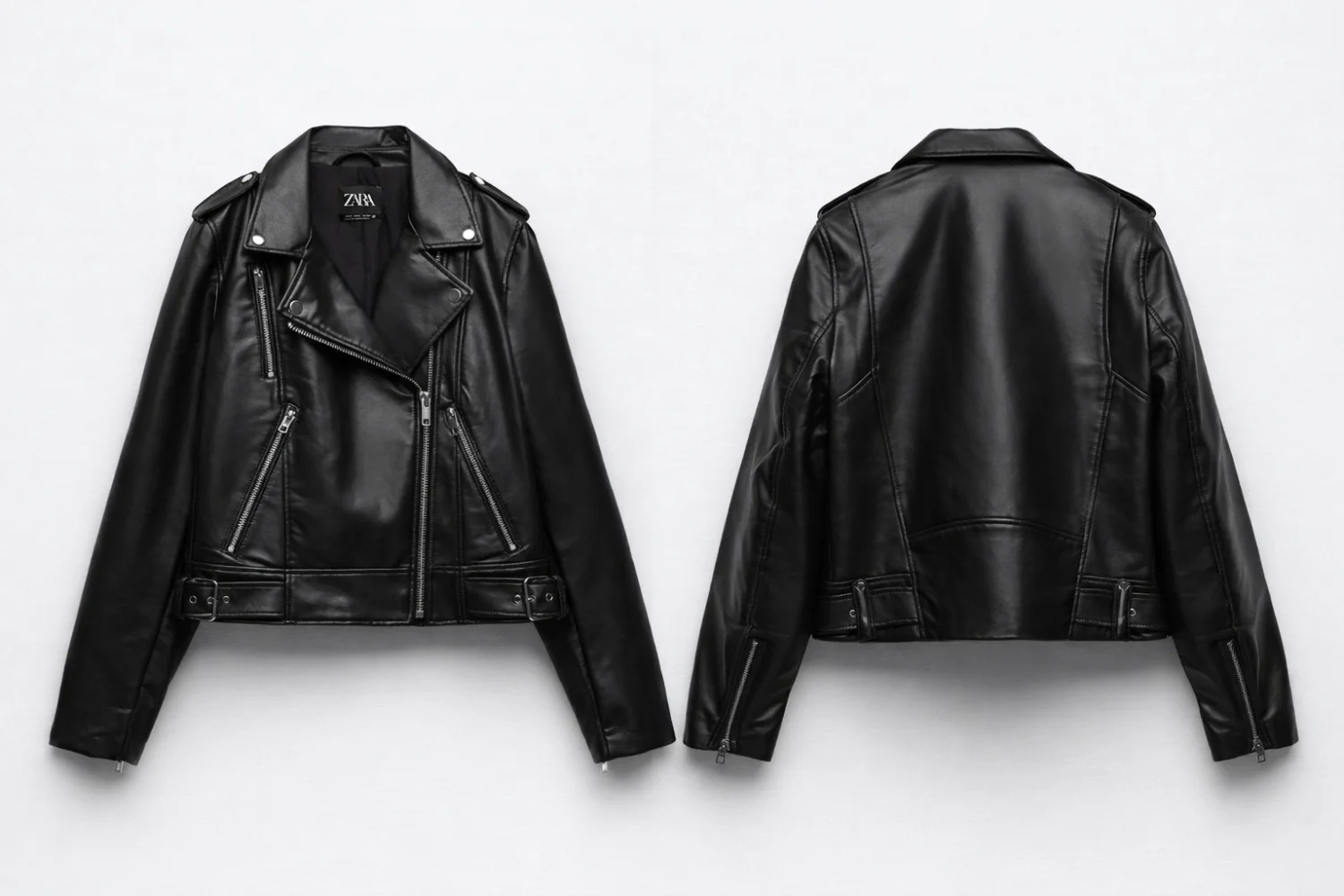 Zara fekete műbörkabát csatokkal