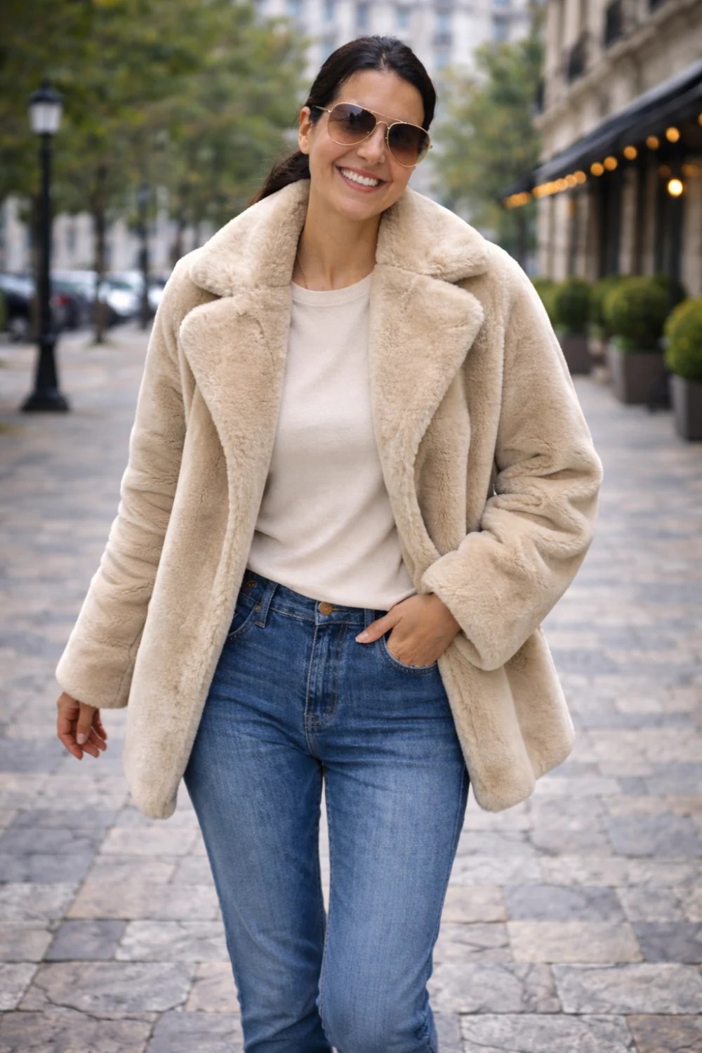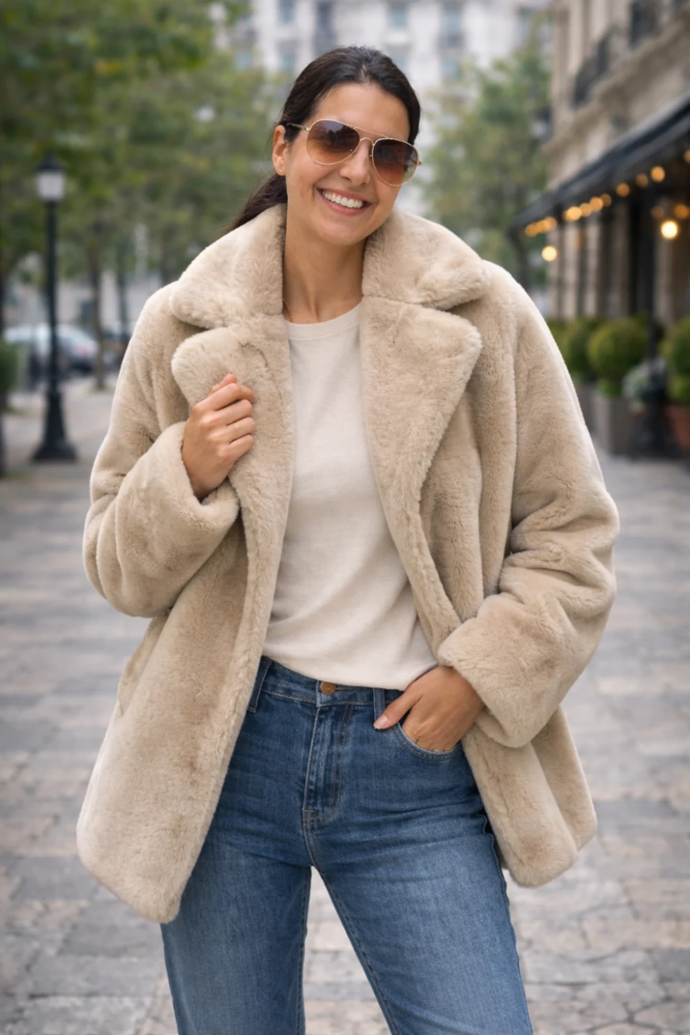 Luxus hatás, kifinomult megjelenés és maximális kényelem egyetlen darabban. Ez a karamell árnyalatú, hosszított műszőrme kabát meleg, elegáns megjelenést biztosít a hűvösebb napokon.