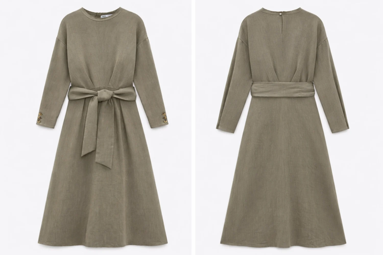 Zara khaki lenvászon hosszú ingruha – kötővel