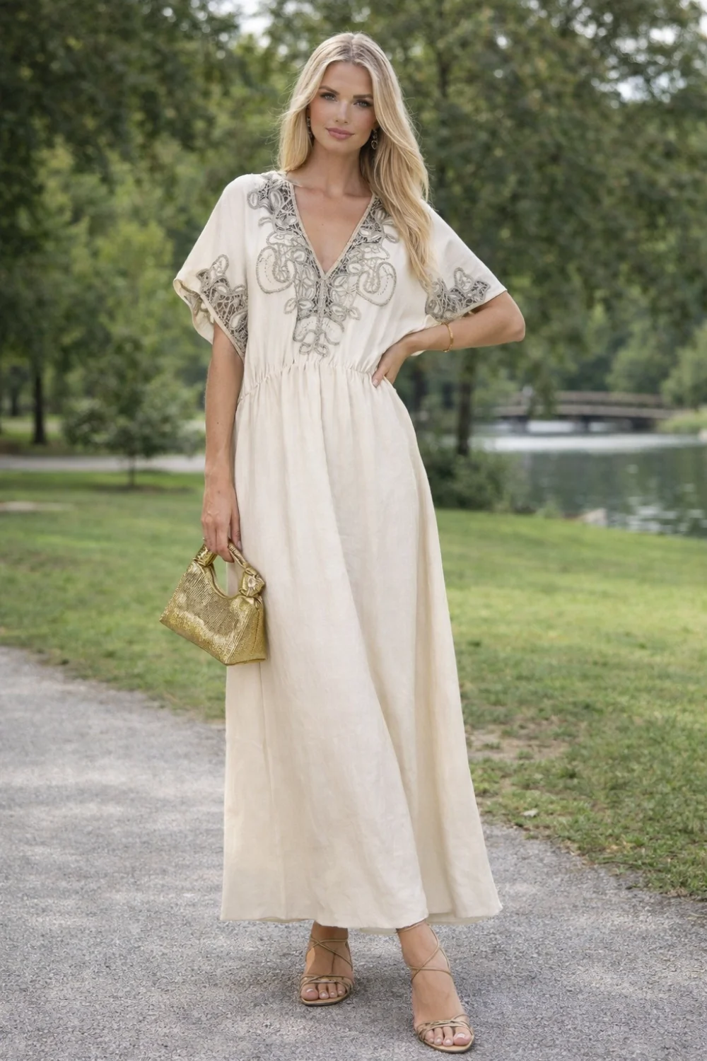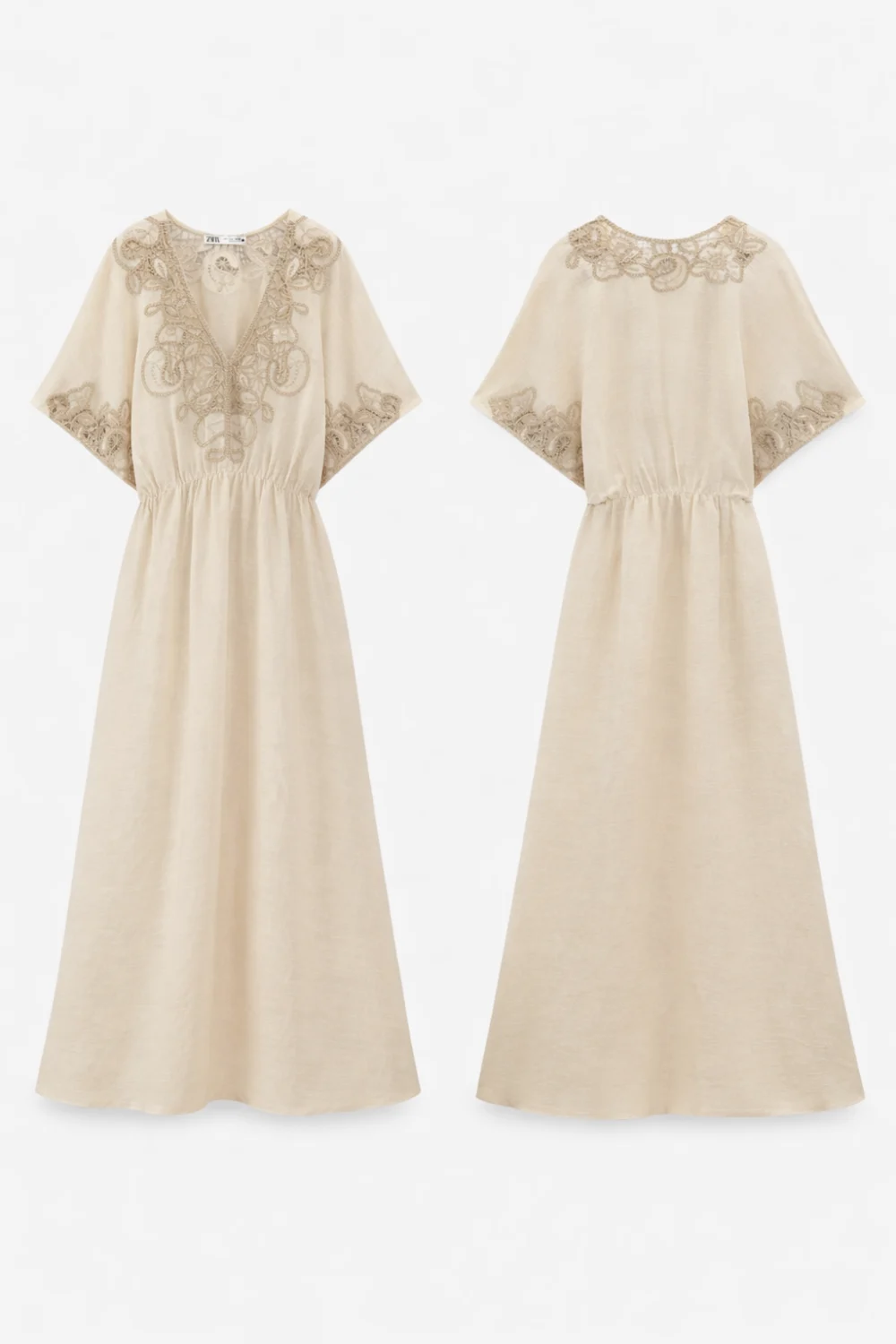 Zara hosszú lenvászon hímzett limitált kiadású ruha