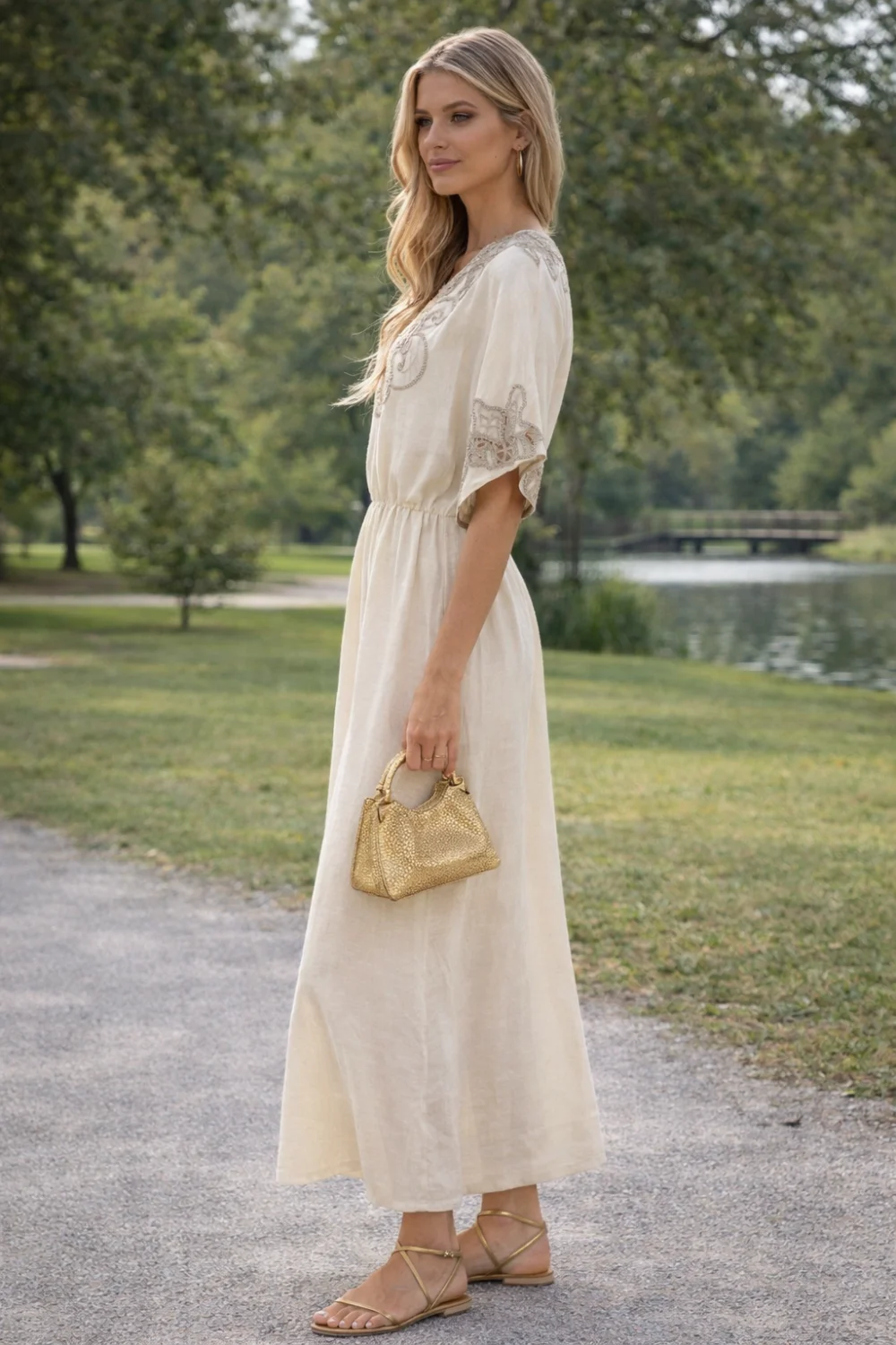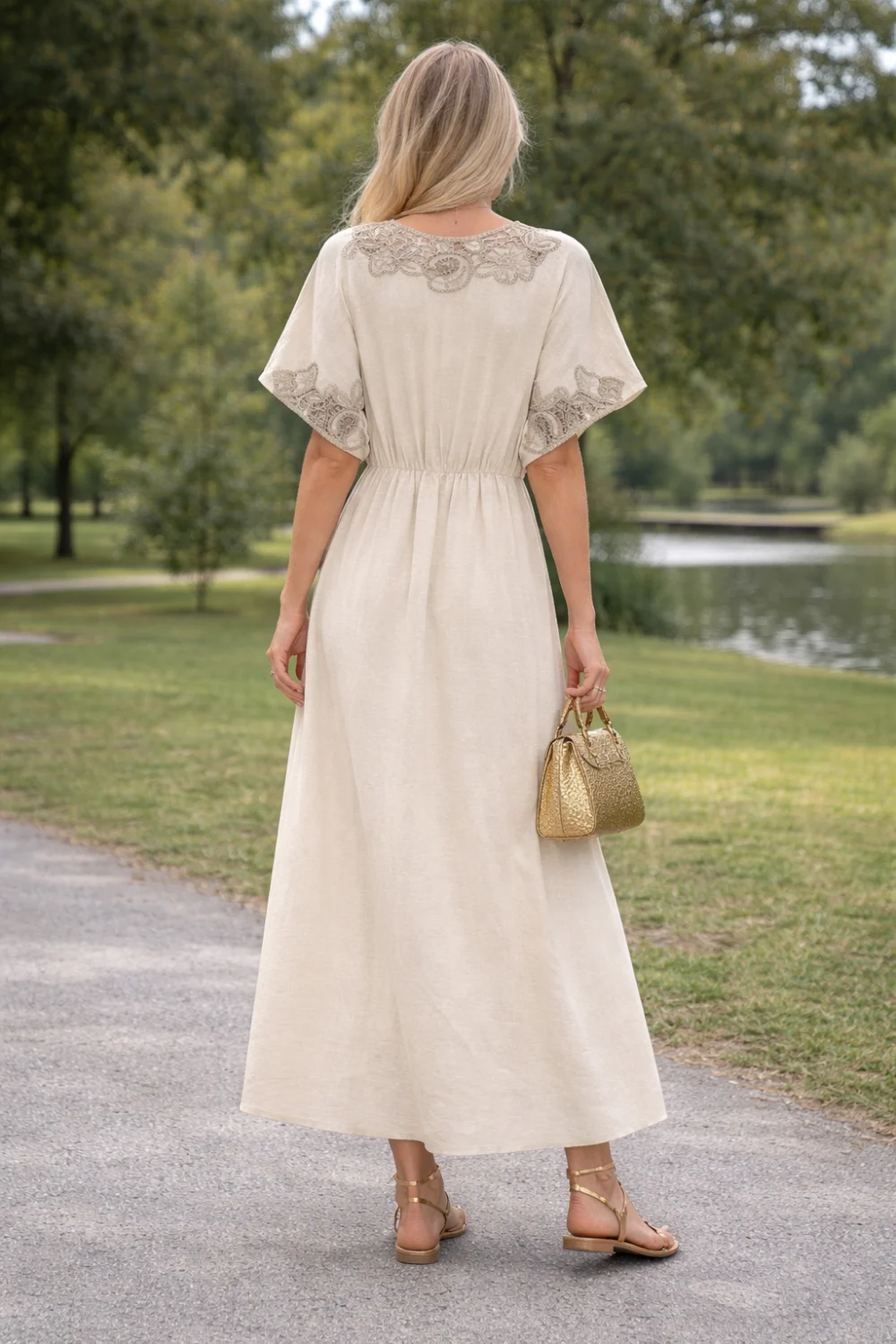 Különleges és időtálló darab a Zara kollekciójából: ez a hosszú, lenvászon ruha finom hímzett részleteivel és limitált kiadásával egyedi, elegáns megjelenést biztosít.