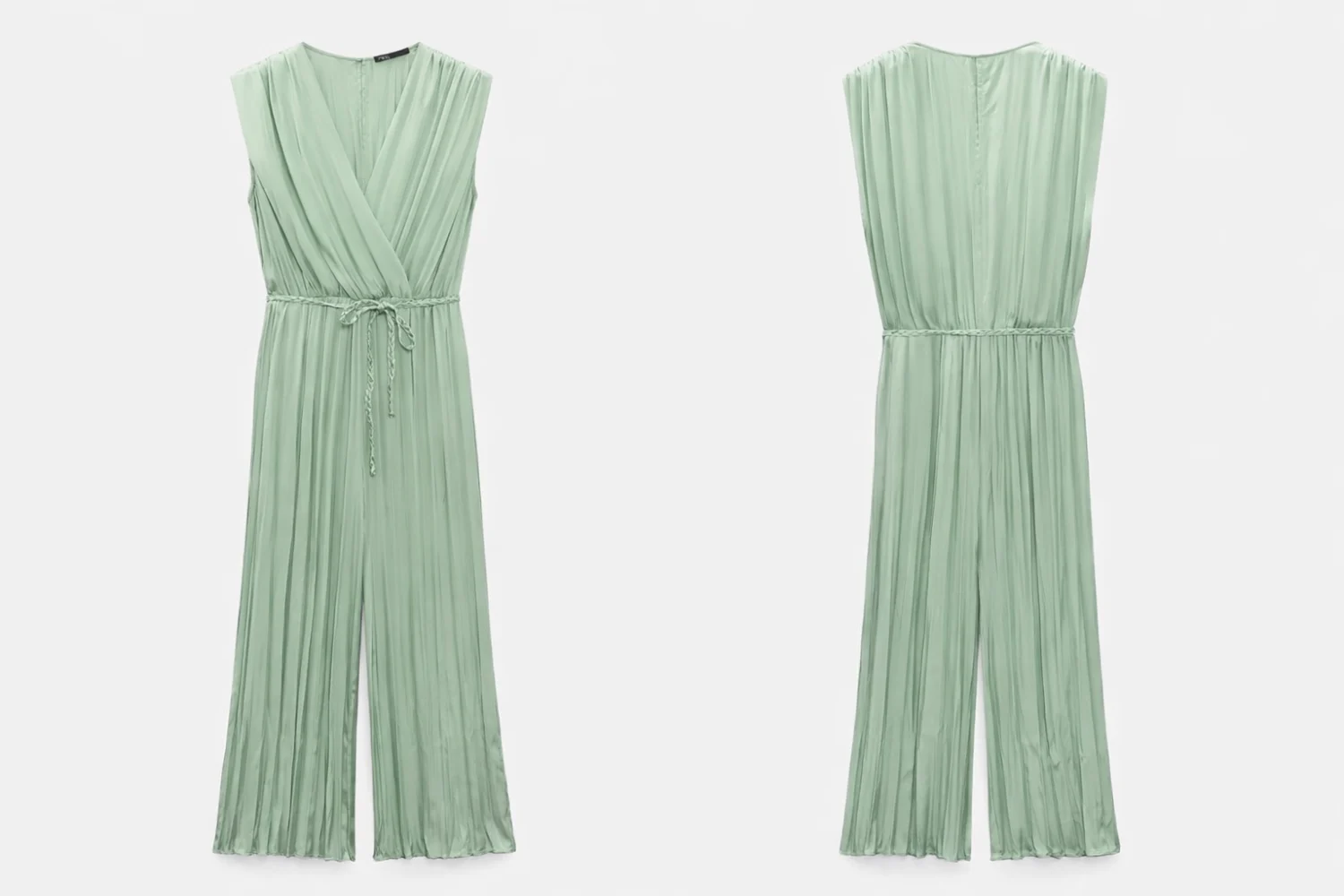 Zara hosszú csinos mentha zöld overáll – szatén anyag, kötővel