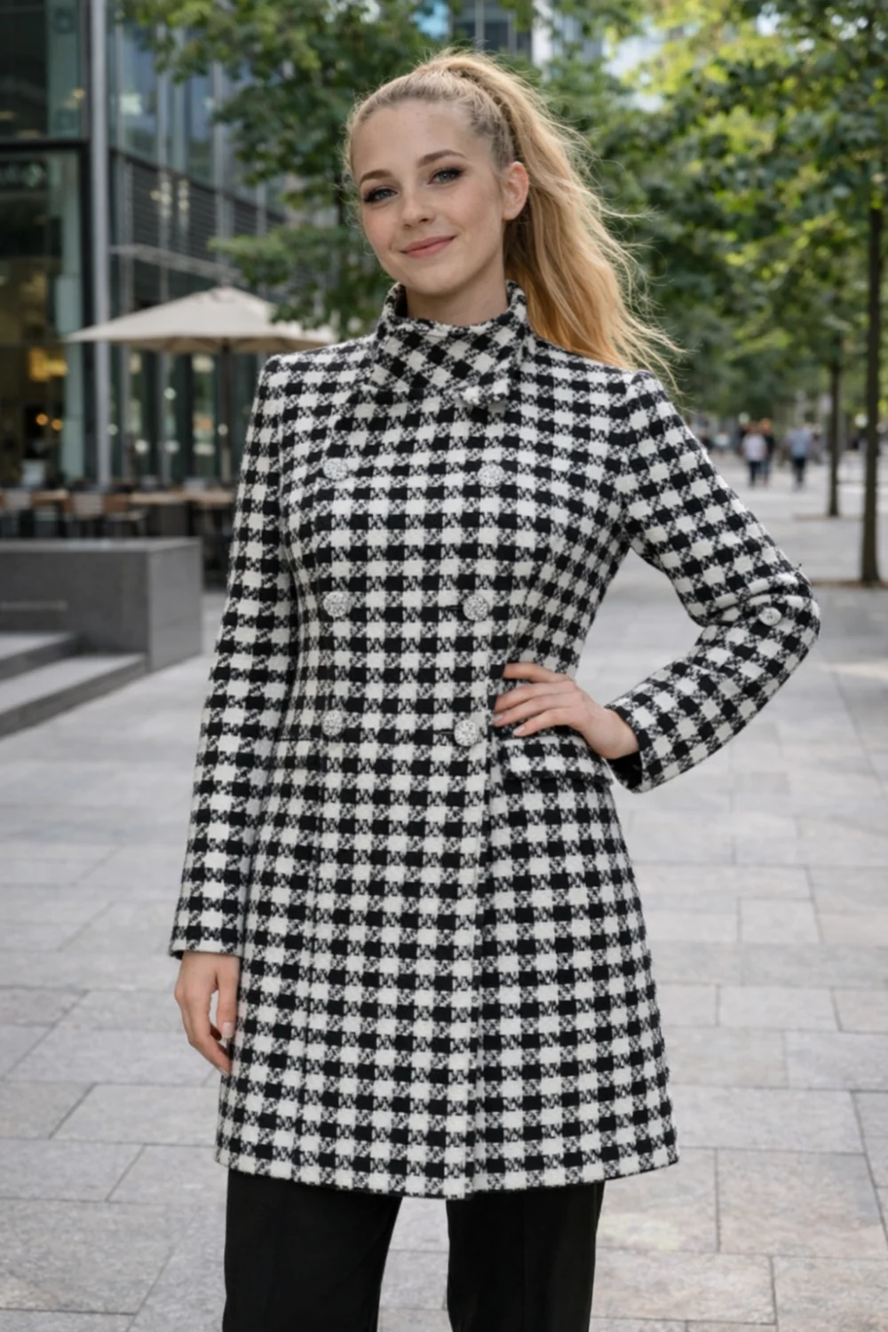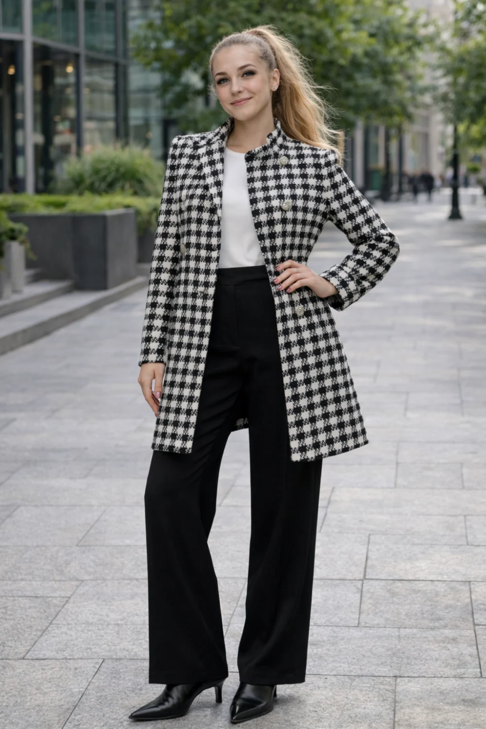 Zara tyúklábmintás csinos kabát ezüst gombokkal
