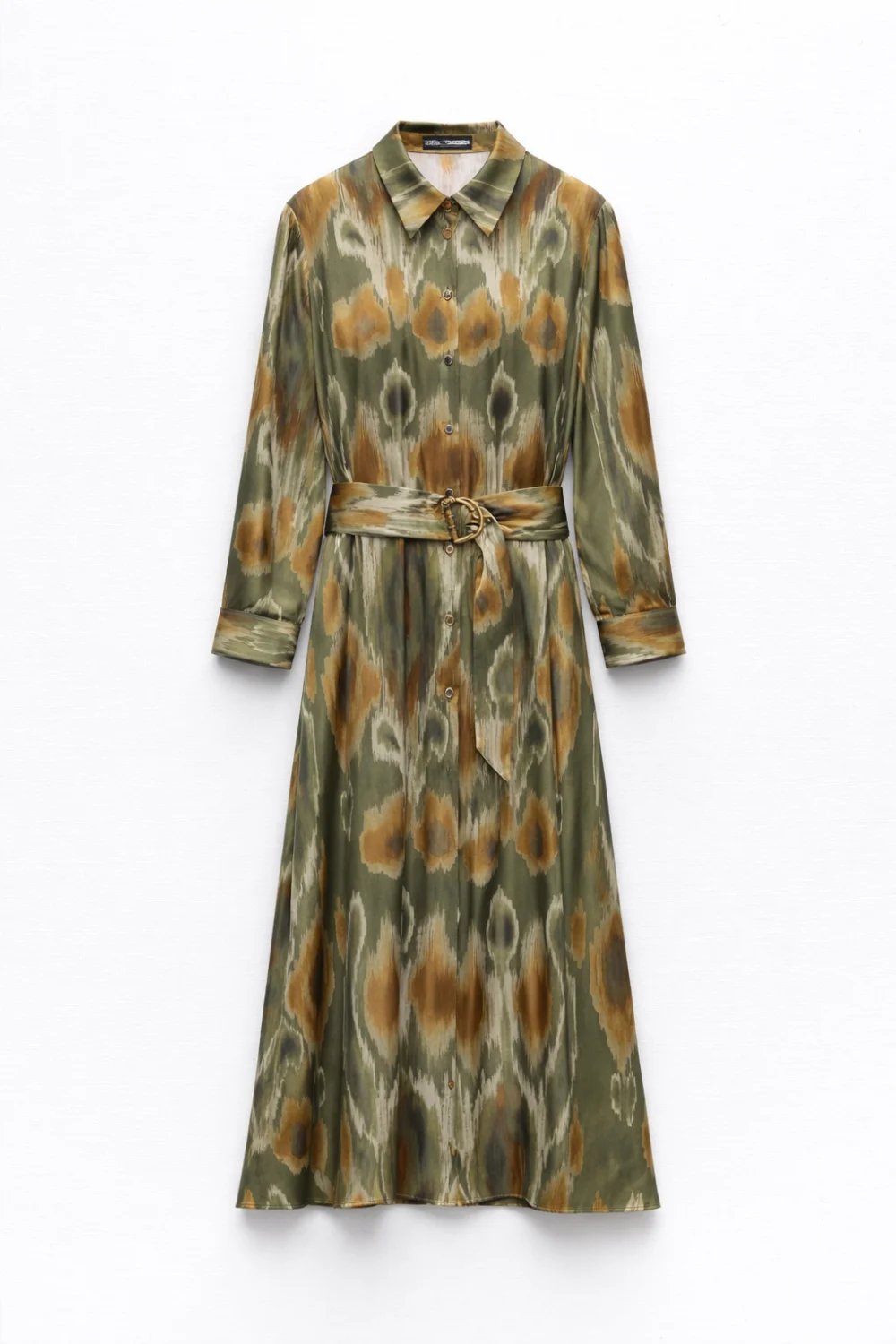 Zara khaki mintás hosszú csinos szatén ruha