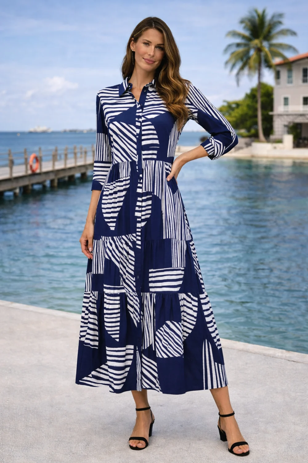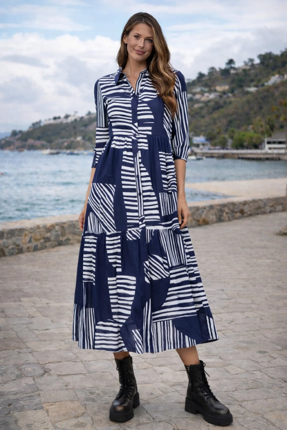 A királykék–fehér minta vidám és sokoldalúan kombinálható – tökéletes választás tavaszi–nyári szettekhez.
