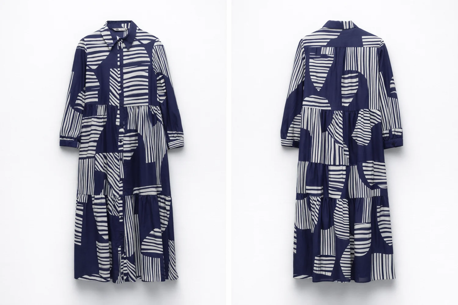 Zara királykék–fehér mintás 100% pamut hosszú ingruha