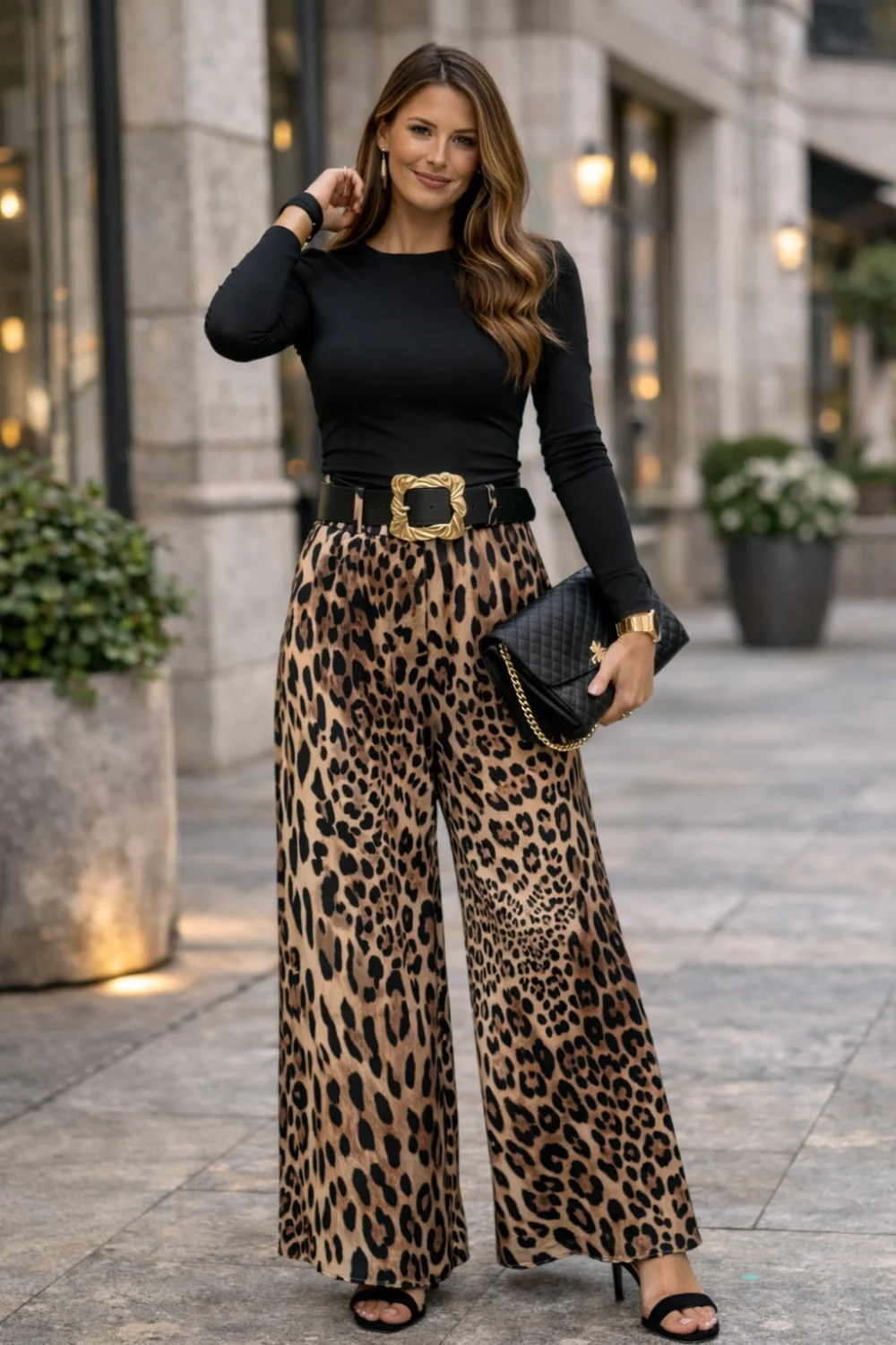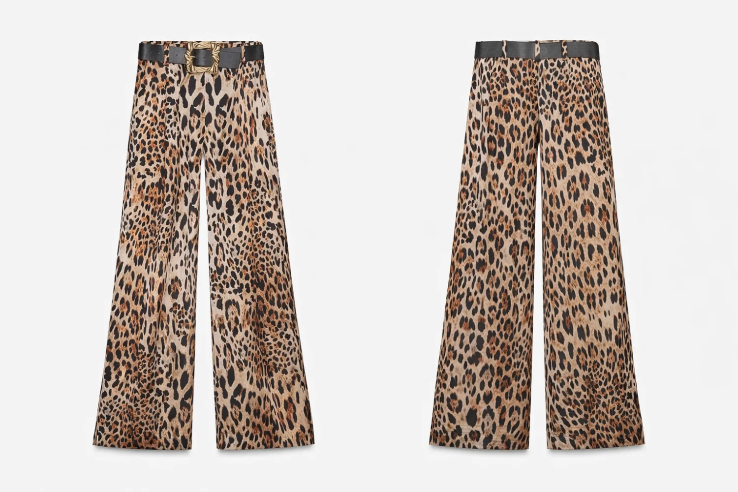 Zara leopárd mintás szatén bőszárú nadrág övvel