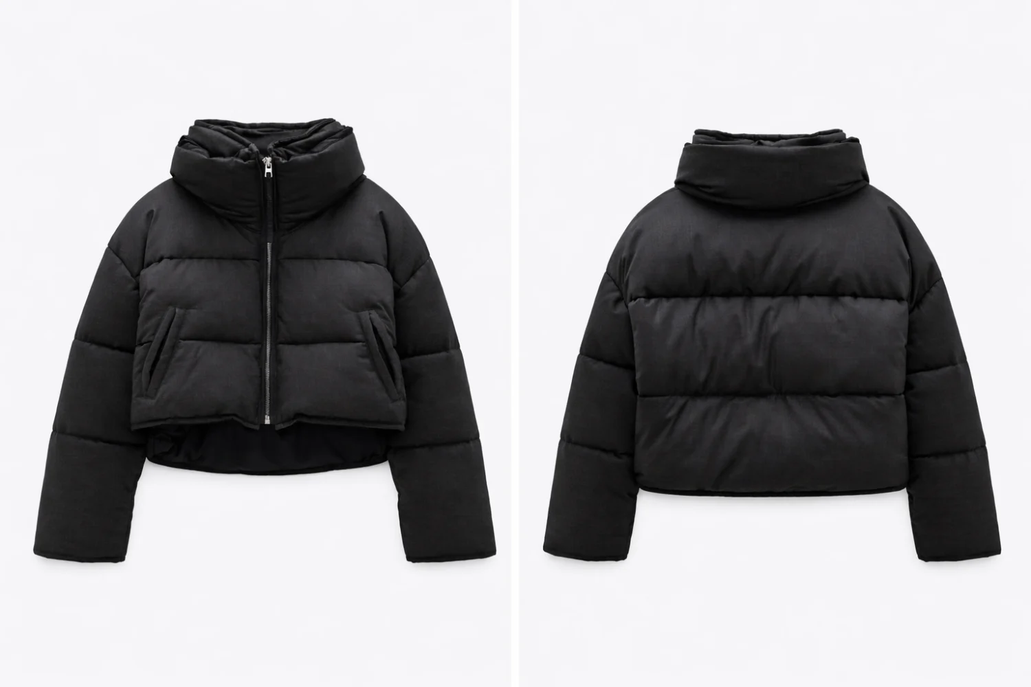 Zara sötétszürke rövid pufi kabát – nagyobb méretezés, magasított nyakkal