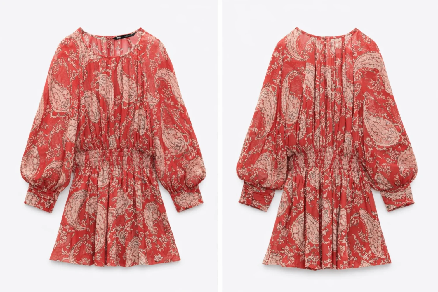 Zara piros mintás lezser ruha – gumis derékkal és passzékkal