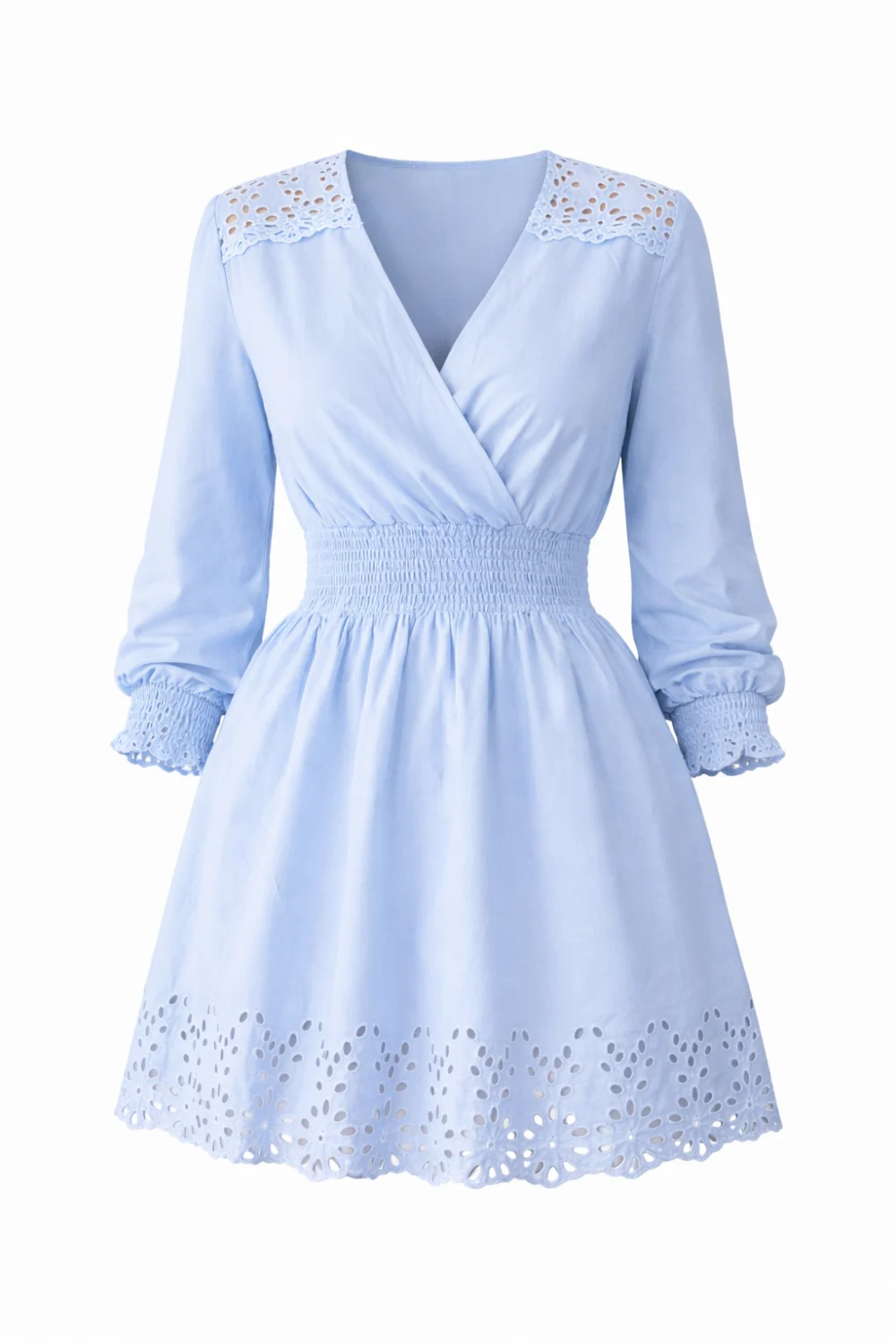 Friss és nőies választás a nyári gardróbba. Ez a Zara babakék, Madeira mintás rövid ruha könnyed anyagának köszönhetően kényelmes viseletet biztosít, miközben romantikus megjelenést ad.