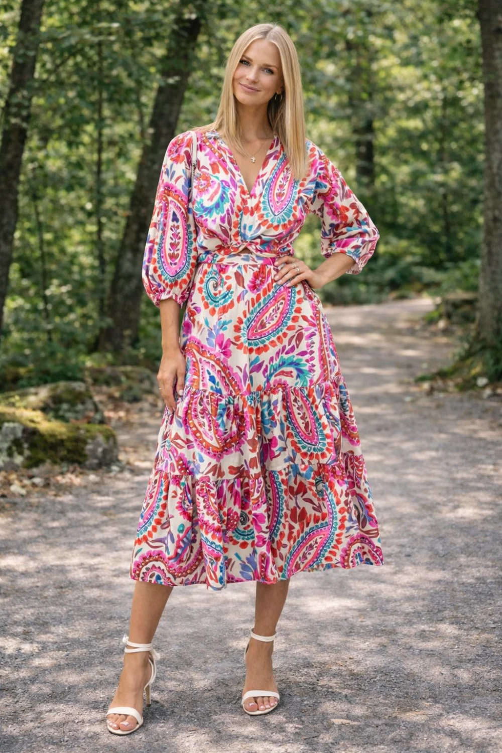 Mesés megjelenés és természetes könnyedség egyben. A 100% pamut anyag kényelmes viseletet biztosít, míg az elől csomós kialakítás és a hercegnős fazon nőies, különleges stílust kölcsönöz.
