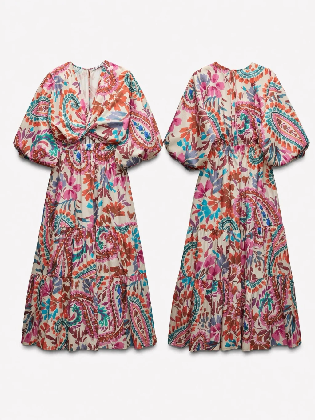 Zara színes hosszú 100% pamut mintás elől csomós hercegnős ruha