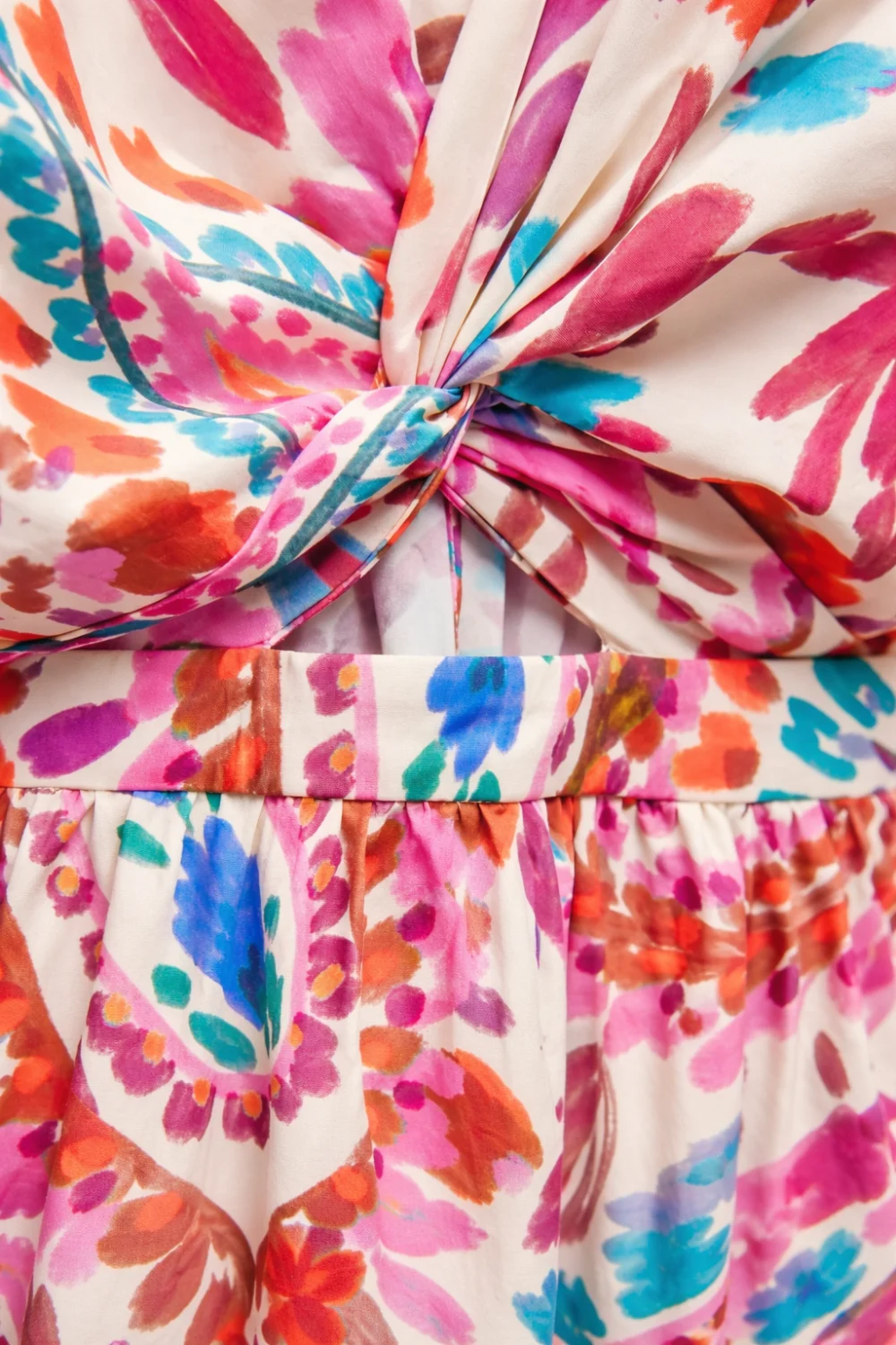 Zara színes mintás hosszú pamut ruha csomós előlrésszel