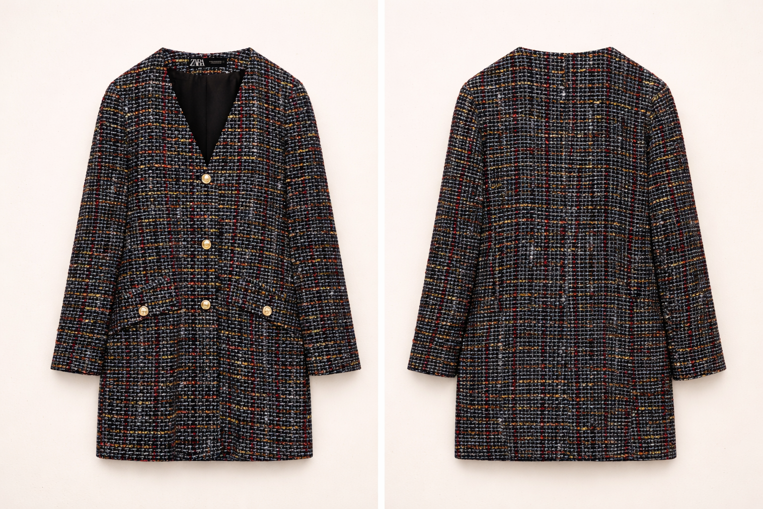 Zara színes tweed/texturált hosszított blézerruha, arany gombokkal