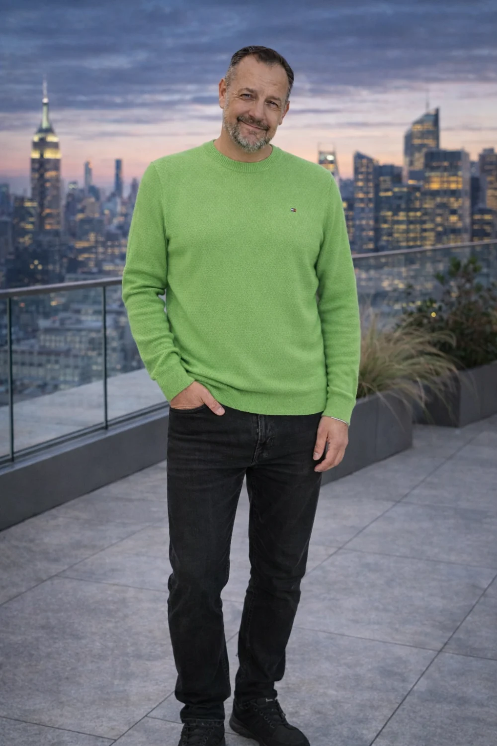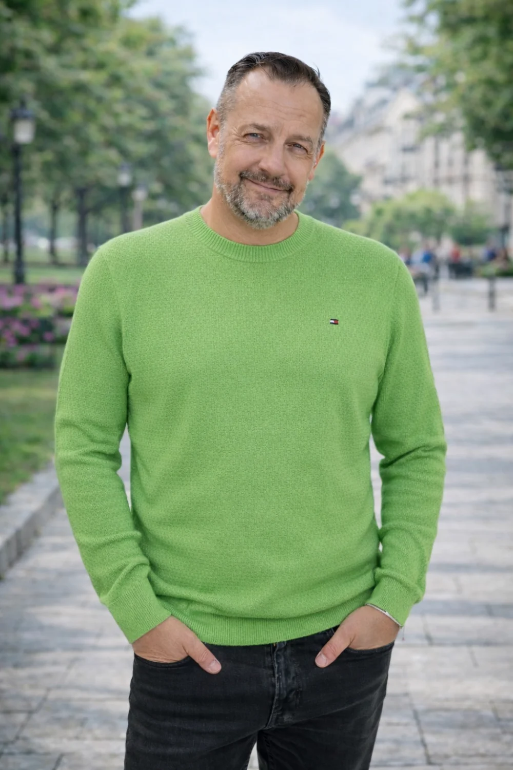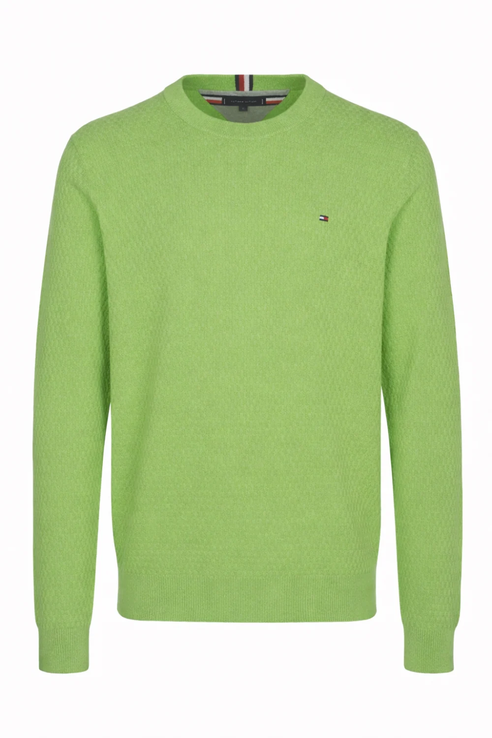 Tommy Hilfiger lime zöld férfi pulóver – normál fazon, kerek nyakkal, lime színben