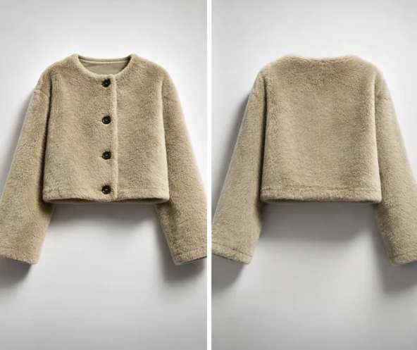 Puha tapintás és meleg, stílusos megjelenés egyben. A hosszú ujjú, elöl gombos kialakítás praktikus és időtálló, míg a barna műszőrme elegáns, mégis kényelmes viseletet biztosít a hűvösebb napokon.