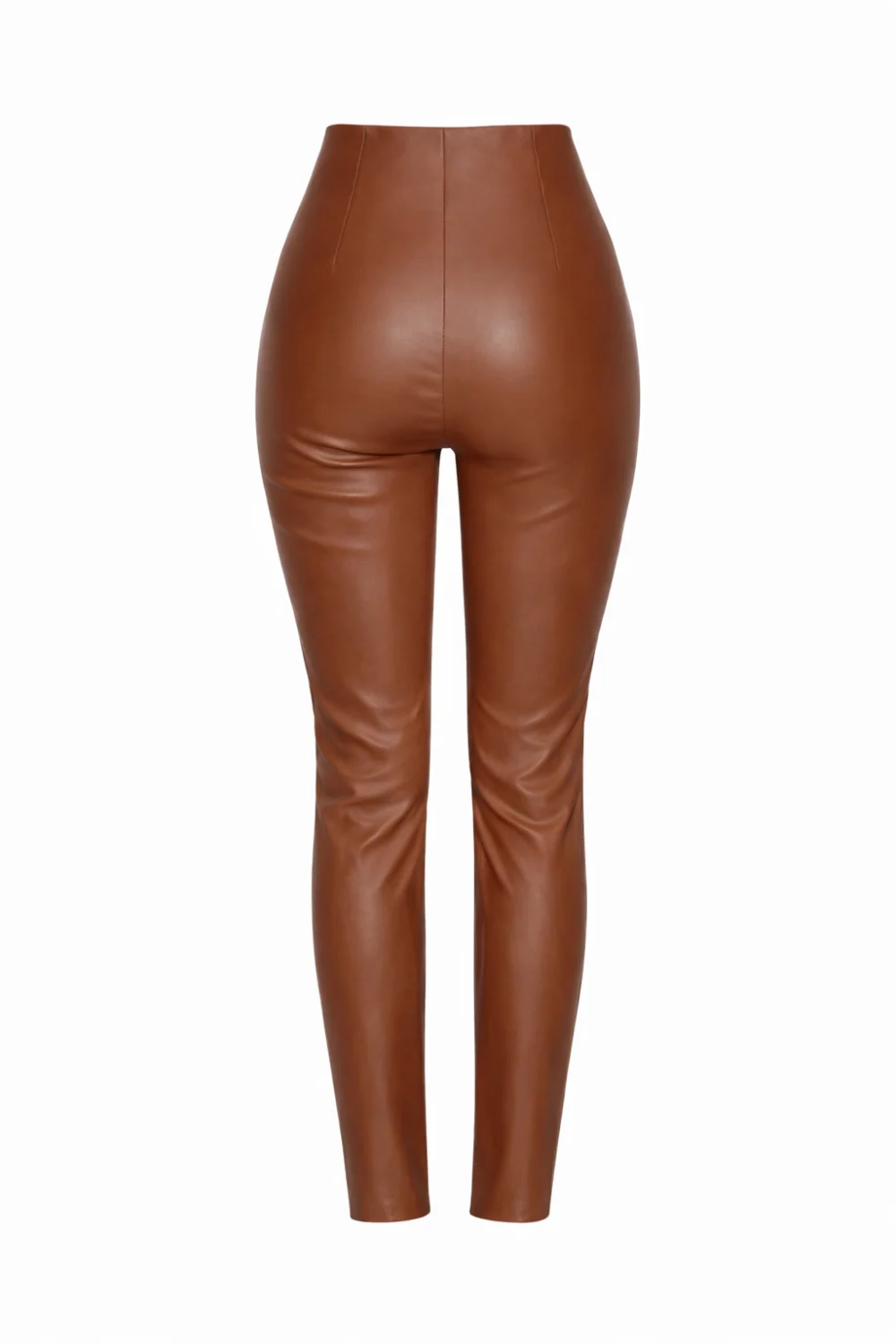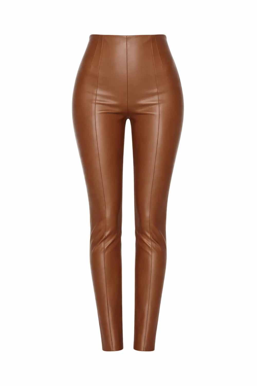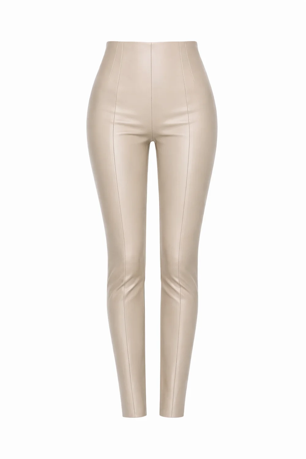 Zara bézs és csoki barna műbőr leggings/nadrág gumis derék résszel/oldalt zippel