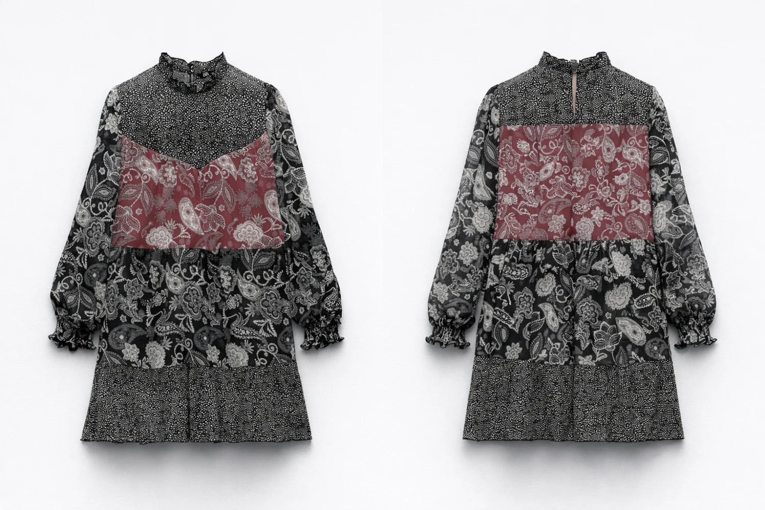Zara bordó-szürke mintás rövid ruha