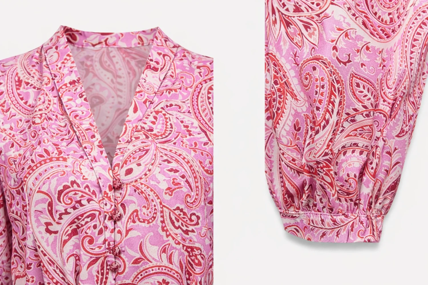 Finom, nőies megjelenés könnyed eleganciával. A mintás design friss, romantikus hangulatot kölcsönöz, míg a deréknál megköthető kialakítás szépen kiemeli az alakot és kényelmes viseletet biztosít.