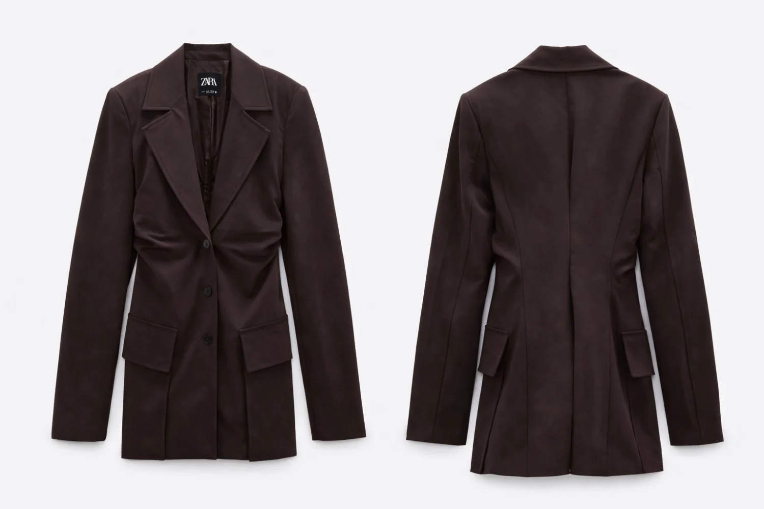 Elegáns és nőies darab, amely modern, kifinomult megjelenést biztosít. Ez a Zara csokibarna blézer ruha rugalmas anyagának köszönhetően kényelmes viseletet nyújt, miközben szépen követi a sziluettet.