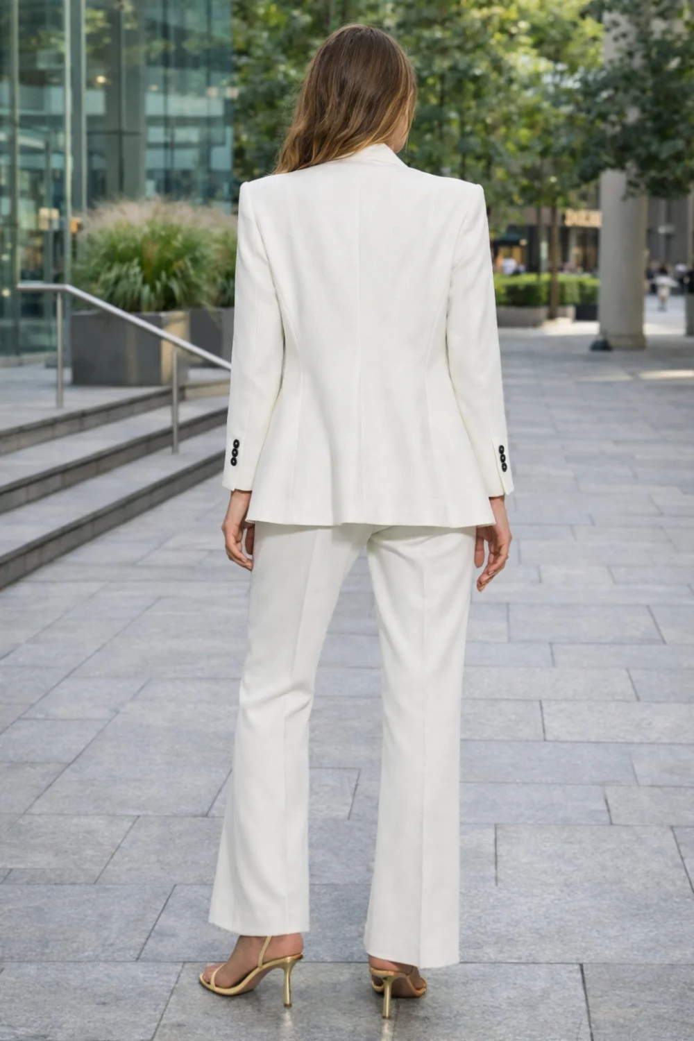 Zara fehér elegáns blézer- és nadrág szett, két fekete gombbal