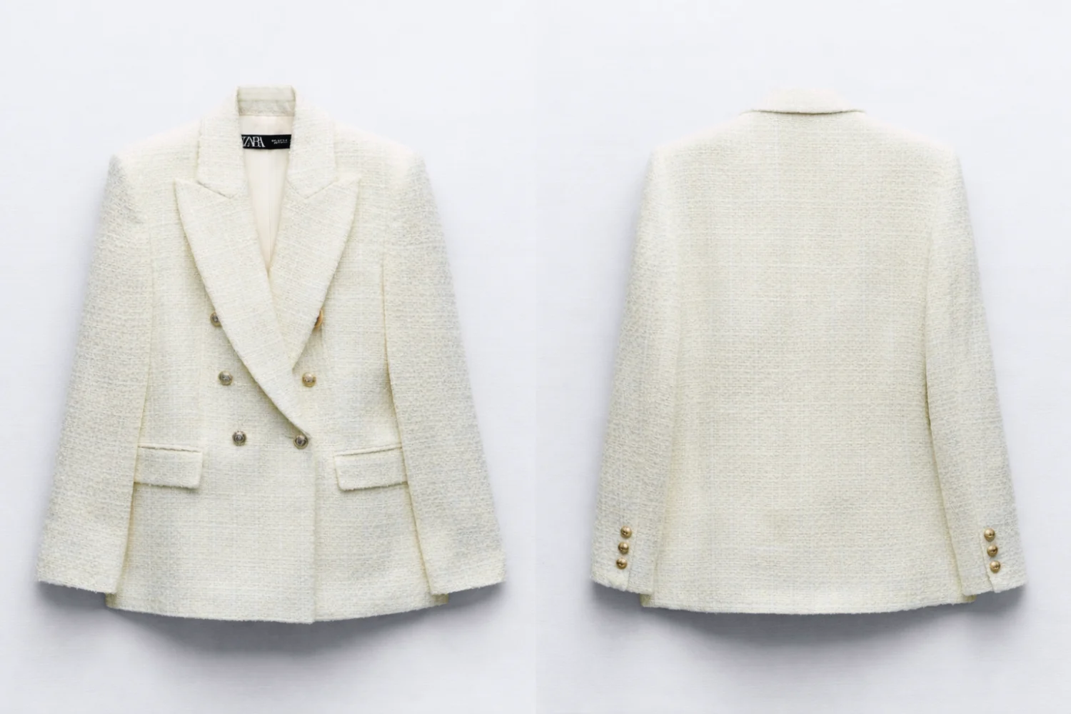 Elegáns és időtálló darab, amely kifinomult megjelenést biztosít. Ez a Zara fekete és bézs árnyalatú tweed/texturált blézer klasszikus, mégis modern hatást kelt különleges anyagának köszönhetően.