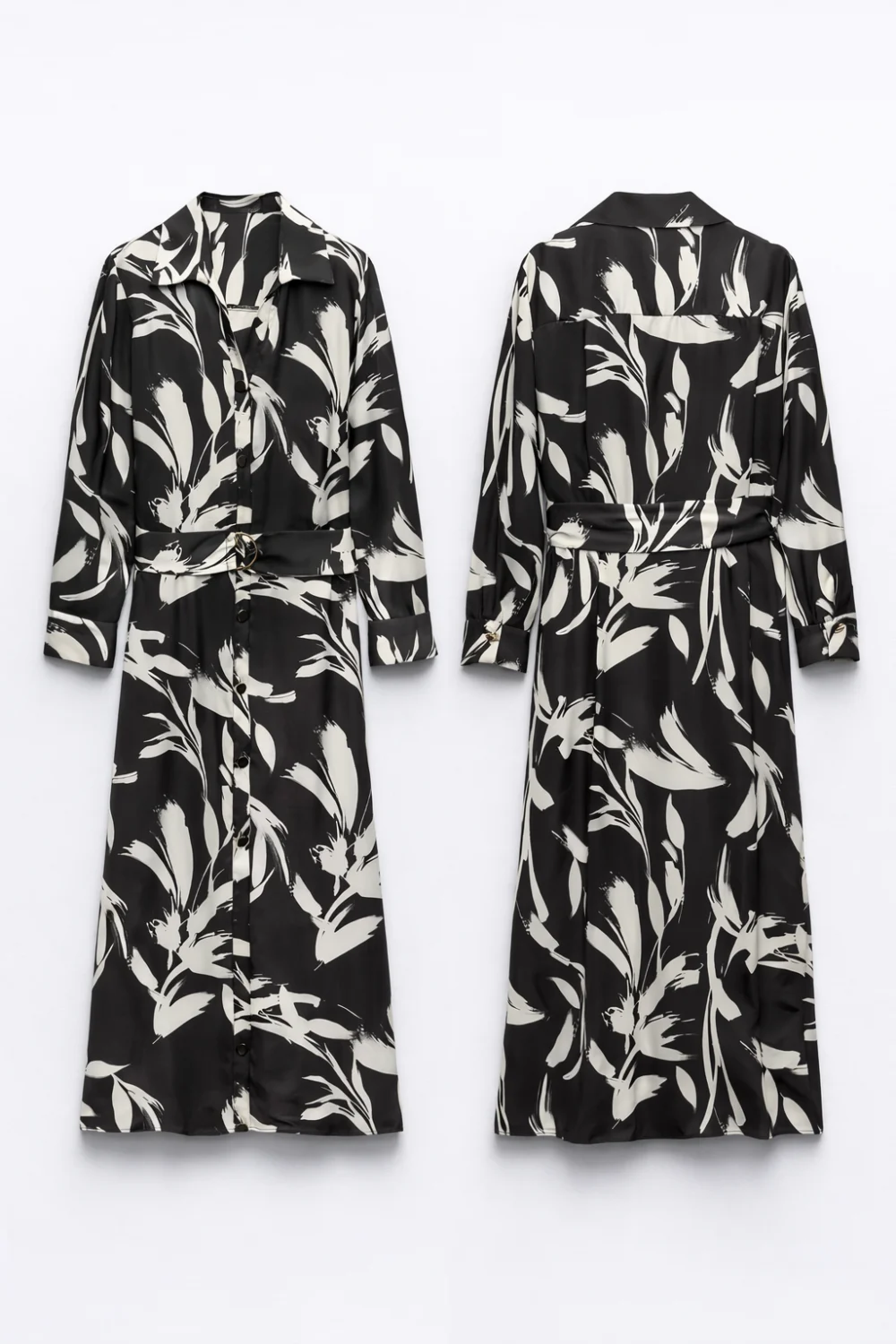 Zara fekete–fehér mintás hosszú szatén ingruha