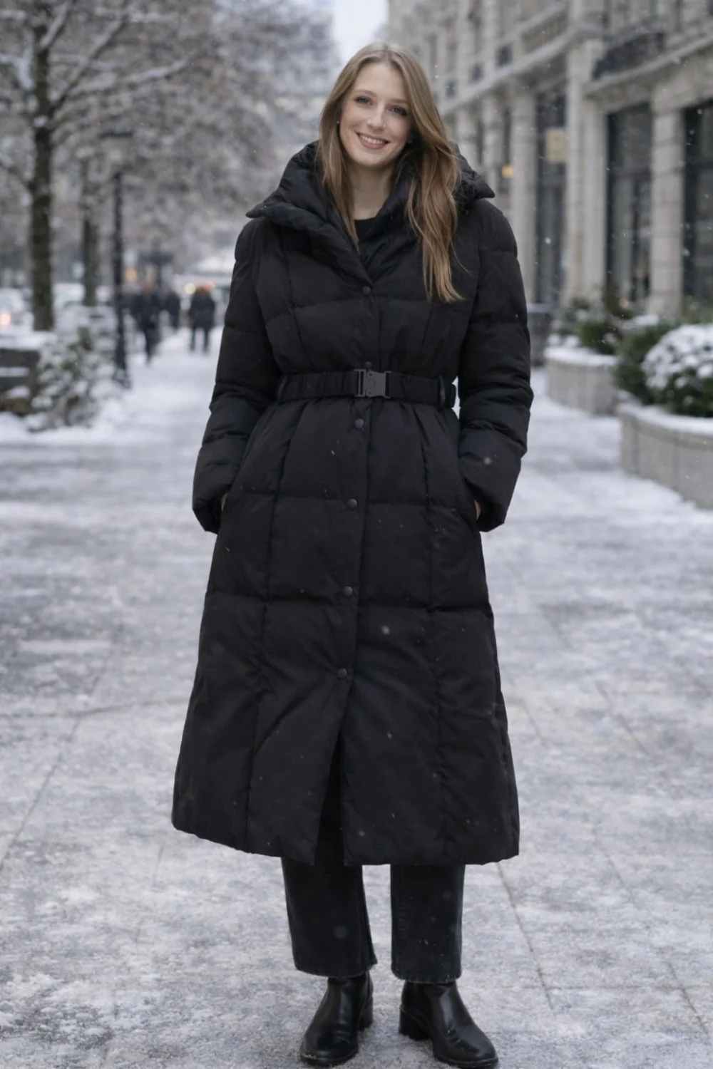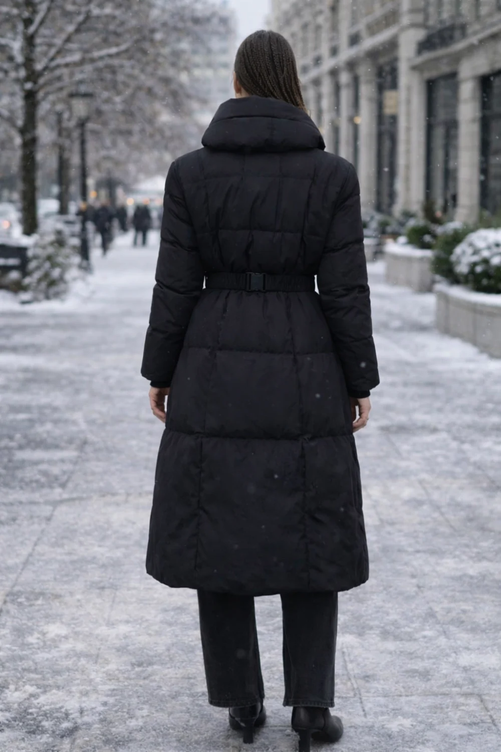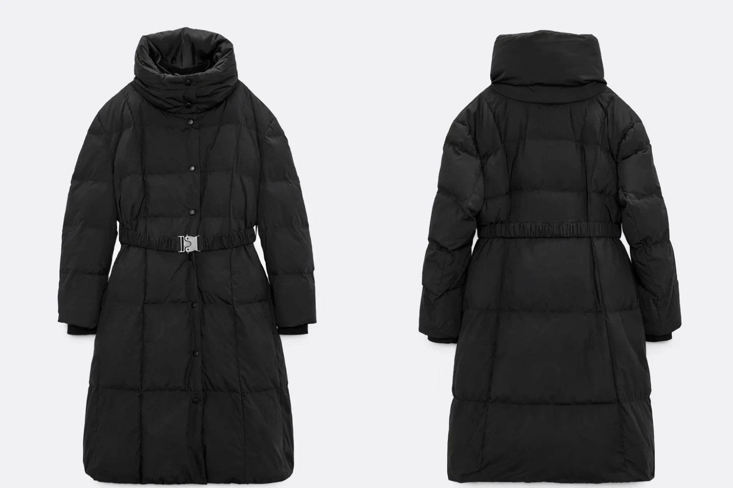 Zara fekete hosszú meleg téli kabát gumis övvel
