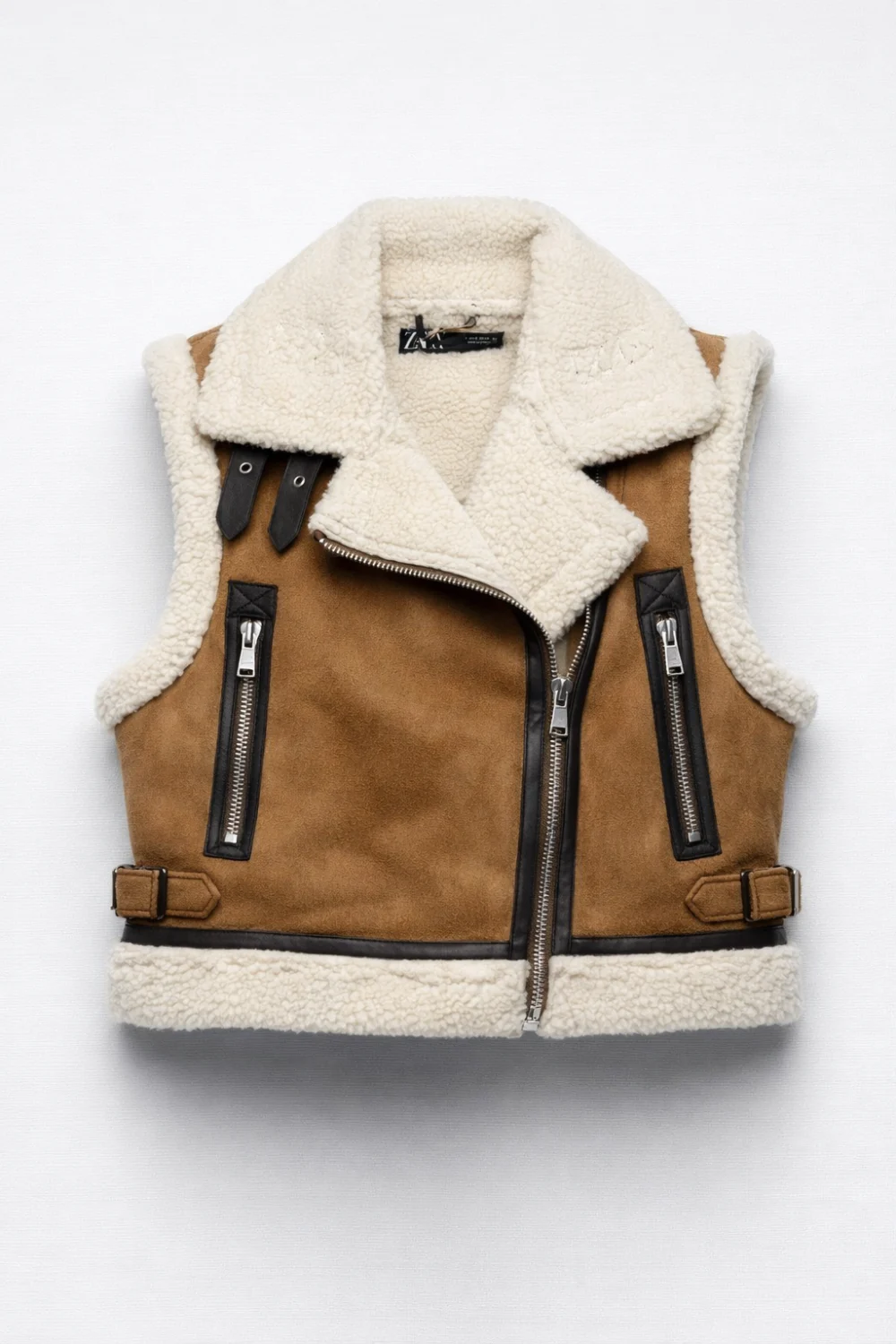 Stílusos és kényelmes darab, amely tökéletes választás az átmeneti időszakokra. Ez a Zara világosbarna rövid mellény puha velúr anyagból készült, meleg viseletet biztosítva.